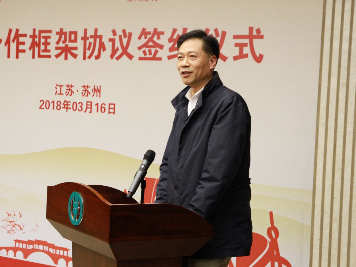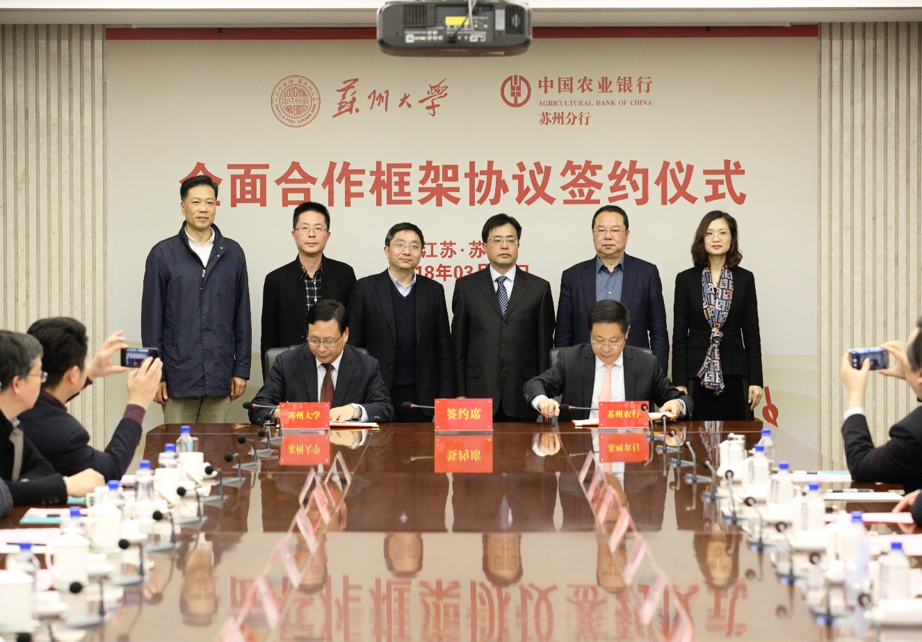 在与会嘉宾的见证下,农业银行苏州分行副行长郑志春与我校总会计师周高,分别代表双方签署了《苏州大学与中国农业银行苏州分行全面合作框架协议》。
