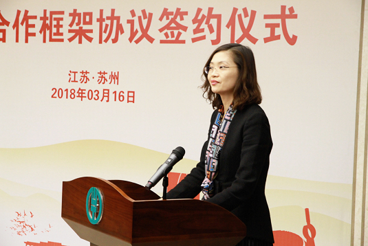 朱晔行长代表农业银行首先致辞。她介绍了农业银行苏州分行的基本情况,并表示苏州分行将以此次签约活动为新的起点,在融资支持、资金管理、代收代付、网点与自助设备布放及个人金融方面给予我校更大力度、更为全面、更加高效的综合金融服务,力求与苏大共同建设融洽、紧密的战略伙伴关系,优势互补,强强联合,进一步巩固双方在各自领域的领先地位。