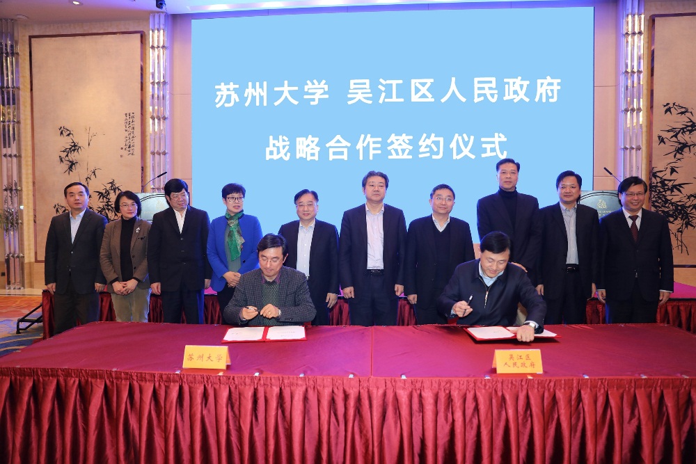 在与会领导的见证下,我校熊思东校长与吴江区政府李铭区长代表双方签署了战略合作框架协议。双方将在共建科技创新智库和政府决策智库,共建联合实验室、研究院(所)和协同创新中心,共同推进科技、教育、医疗卫生、特色小镇等多领域开展深入合作。