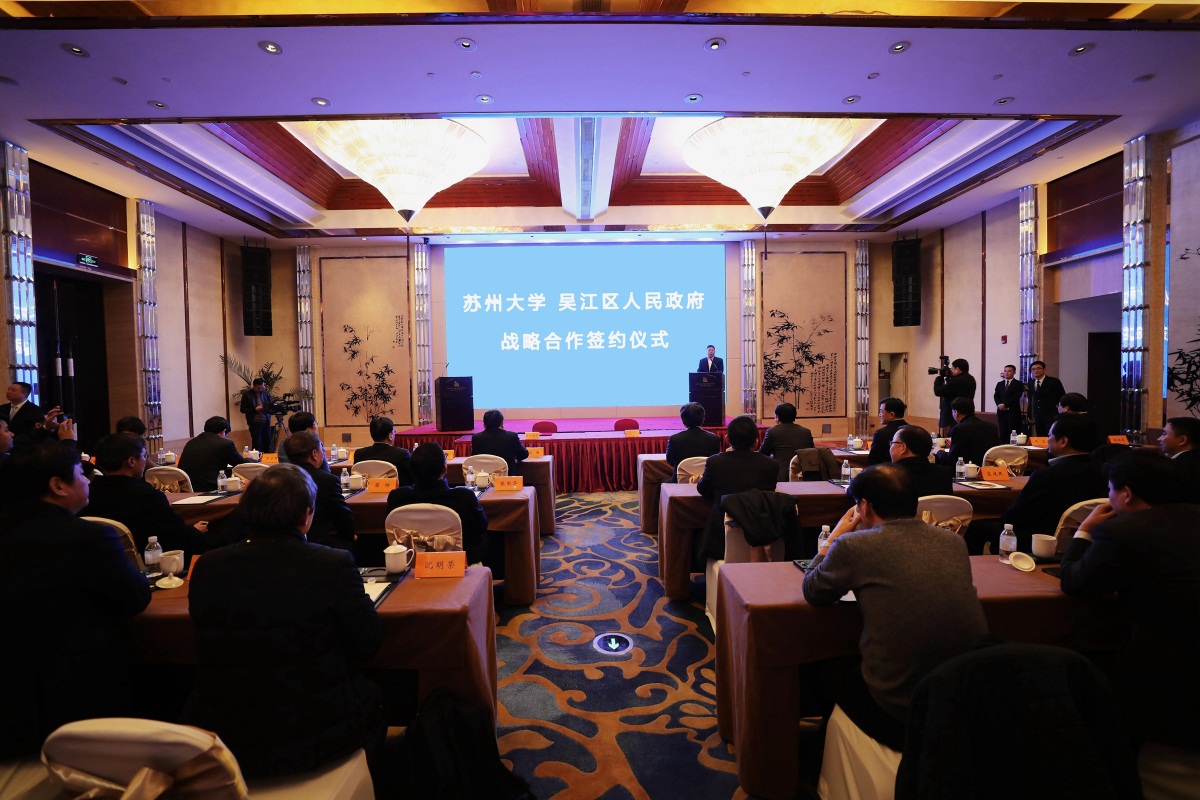 1月11日下午,我校与苏州市吴江区人民政府战略合作框架协议签约仪式在吴江区举行。苏州市政府副市长曹后灵,我校校领导江涌、熊思东、路建美、杨一心、蒋星红、周高、张晓宏,吴江区委书记沈国芳,区委副书记、区长李铭,副区长汤卫明、张炳高,以及双方相关职能部门负责人参加了签约仪式。仪式由张炳高主持。