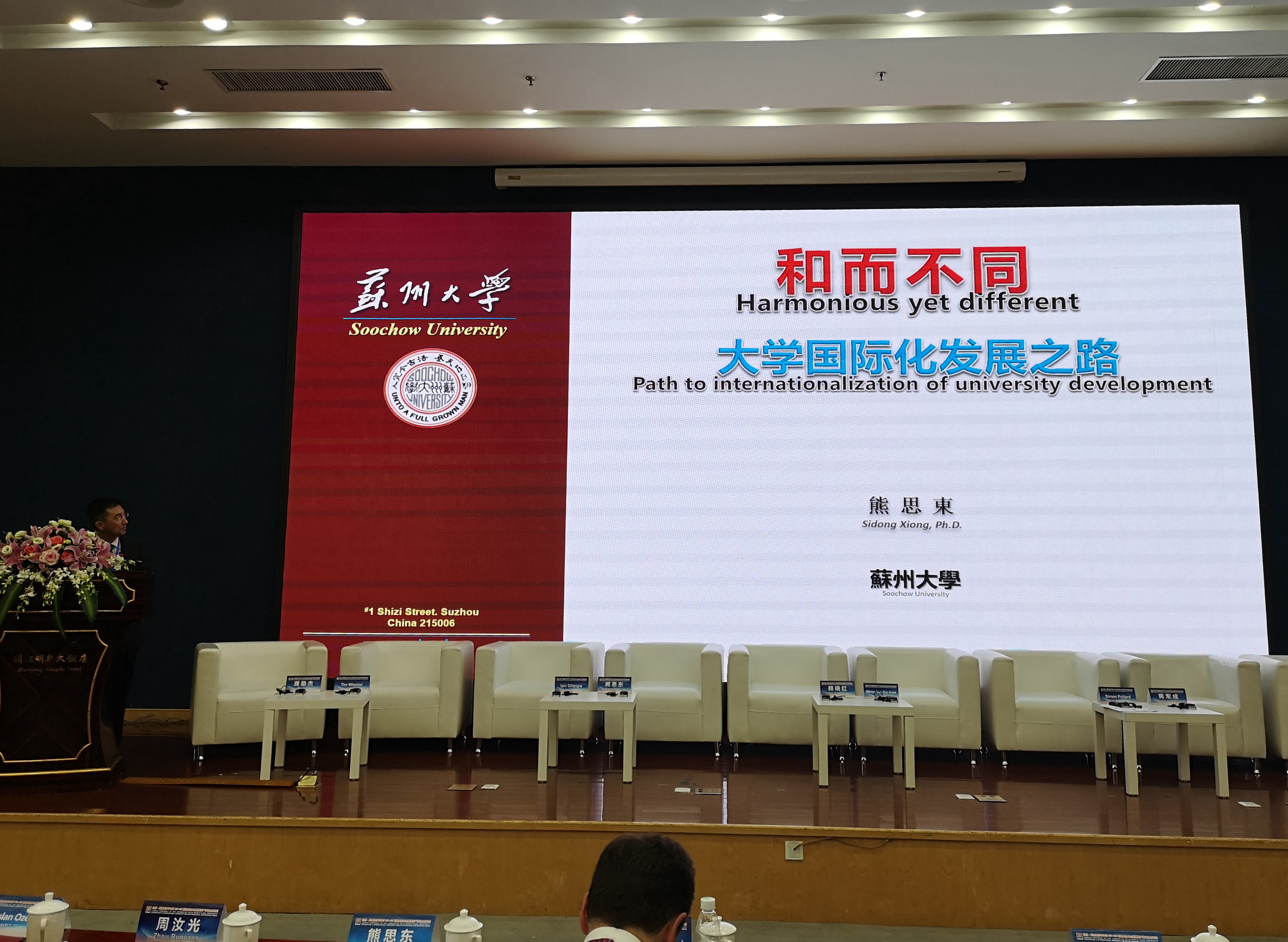 4月8日至9日,江苏-英国高水平大学20+20联盟成立大会暨国际产学研合作论坛在江苏镇江举行。江苏省人民政府副省长王江、英国驻上海总领事吴侨文、镇江市人民政府市长张叶飞、教育部国际司副司长方军、江苏省人民政府副秘书长陈少军、江苏省外事办公室副主任张松平、江苏省教育厅副厅长王成斌、镇江市人民政府副市长许文、江苏省教育厅国际处处长贺兴初等出席会议。来自江苏23所高校和英国13所高校的近200名嘉宾,围绕“大学管理和中英合作创新”“先进制造”“环境工程”“医疗健康”等主题开展交流,分享经验,推动落实江苏-英国高水平大学20+20行动计划。 我校熊思东校长应邀参会,以“和而不同——大学国际化发展之路”为题,在大会的中英校长论坛上发表演讲,受到与会者广泛关注和积极评价。 熊校长在演讲的引言中,以“我们的大学为何而存在”和“高等教育为什么能够国际化”为问题,提出“和而不同”的高等教育国际化路径,既强调大学的共性特征,又重视大学的特色发展,对全球关注的大学国际化问题做了全新的阐释。近年来,苏州大学快速有序的发展受到国内外广泛关注,办学的国际化始终是苏州大学的重要发展战略之一。熊思东校长在演讲中,以世界一流大学为参照,结合苏州大学的发展道路,重点阐释了“我们的思考与机遇”“我们的策略与行动”“我们的征程与愿景”三个方面的内容。在介绍了苏州大学的历史沿革和现状后,熊校长指出,作为中国首家以现代大学治理体系和西式课程体系举办的大学,国际化是苏州大学与生俱来的办学基因。关于苏州大学国际化的理念,熊校长概括为:将国际化视为学校的一种基本生存方式,将国际化作为学校配置资源的重要途径。结合国际化理念,熊校长详细介绍了苏州大学这些年国际化办学的举措和成果,其中苏州大学已先后与英国的11所高校建立了各种层次的合作关系。熊校长用四个“更加注重”表达苏州大学的征程与愿景:更加注重全域视角下的人才培养、更加注重人类科学难题协同攻关、更加注重产教融合一体化走出去、更加注重不同文明的交流与互鉴。最后,熊校长指出,江苏—英国高水平大学20+20联盟大有可为,苏州大学将积极参与其中,走出一条“和而不同”的大学国际化道路。 近年来,苏州大学大力实施“以国际知名带动国内一流”的国际化战略,一方面注重“引进来”,积极引进海外优质资源,与英国剑桥大学、牛津大学、澳大利亚悉尼大学、美国威斯康星大学麦迪逊分校、新加坡国立大学等200多所海外知名大学及科研机构建立广泛合作关系;另一方面主动“走出去”,参与或发起组建了“中国-东盟医学教育大学联盟”“江苏—安省大学合作联盟”、海峡两岸及澳洲高等教育论坛等,与美国波特兰州立大学共建孔子学院,参与教育部中非“20+20”项目援建尼日利亚拉各斯大学,并创办了中国首家境外高校老挝苏州大学。此次正式加入“江苏-英国高水平大学20+20联盟”标志着我校与英国高水平大学开展实质性创新合作又迈出重要一步。 |