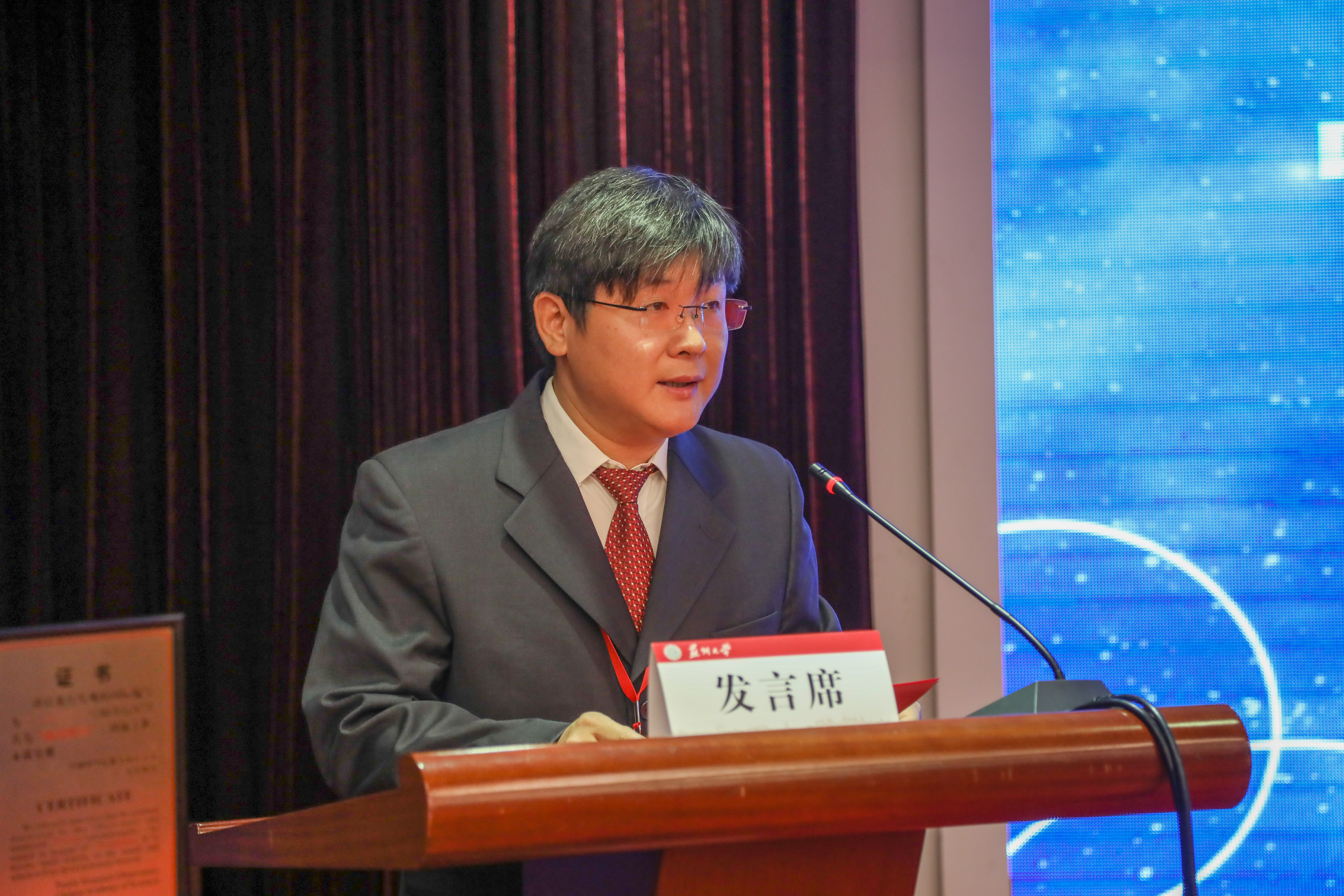 熊思东代表学校全体师生员工向潘君骅院士致以崇高敬意和热烈祝贺,向各位来宾表示热烈欢迎和诚挚感谢。他指出,从事科研工作已67年的潘君骅院士,把最宝贵的光阴奉献给了自己最热爱的光学事业,在天文学史上留下了浓墨重彩的一笔,这是潘院士的光荣,也是苏大人的荣耀。潘院士严谨、细致、踏实的科研精神,让苏大人感受到老一代科学家对科学的执着追求,激励和鞭策着苏大青年一代接续奋斗。在潘院士精神的指引下,苏大人将点燃更多科学梦想,激发无穷创新活力,让未来祖国的科技天地群英荟萃,让未来科学的浩瀚星空群星闪耀。