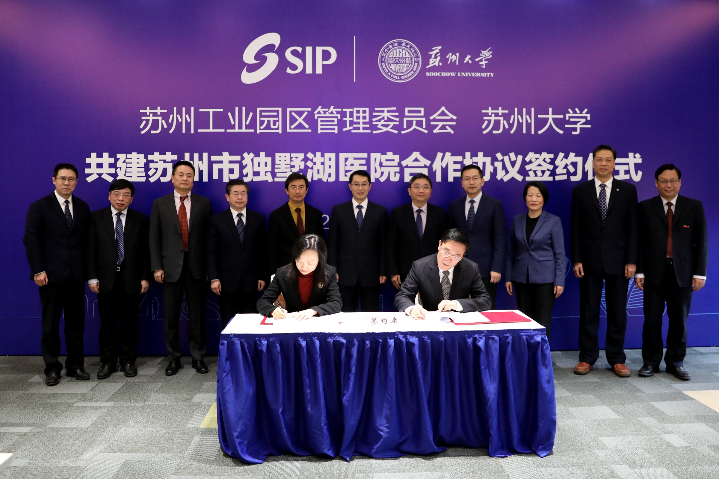 会上,苏州工业园区党工委副书记、管委会主任丁立新和苏州大学校长熊思东签署《苏州工业园区管理委员会 苏州大学关于共建苏州市独墅湖医院的合作协议》。苏州工业园区党工委委员、管委会副主任夏芳和苏州大学附属第一医院院长侯建全签署《苏州工业园区管理委员会苏州大学附属第一医院 关于苏州市独墅湖医院的委托管理协议》。