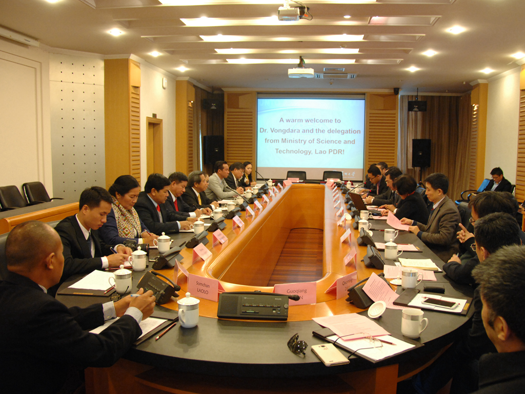 Boviengkham VONGDARA部长对我校时刻关心关注老挝的发展表示衷心感谢。他说,近年来老挝政府十分重视科技工作,鼓励开展科学研究、高层次科技人才培养、科研服务能力提升以及国际合作。目前,老挝在科技人才培养、科研成果的实际运用与推广、知识产权保护和标准制定等方面面临着不少困难,希望双方在高层次科技人才培养、短期人才培训、丝绸产业领域、中草药种植与科研领域、纳米技术应用领域等开展更多的交流与合作,帮助农民脱贫致富,推动老挝科技创新和产业转型升级,使得中老双方共享科技发展带来的硕果。