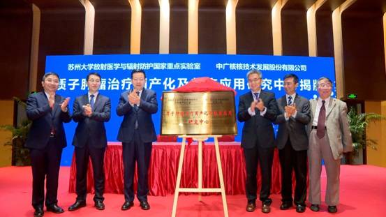 周乃翔书记、贺禹董事长为“质子肿瘤治疗国产化及临床应用研究中心”揭牌。