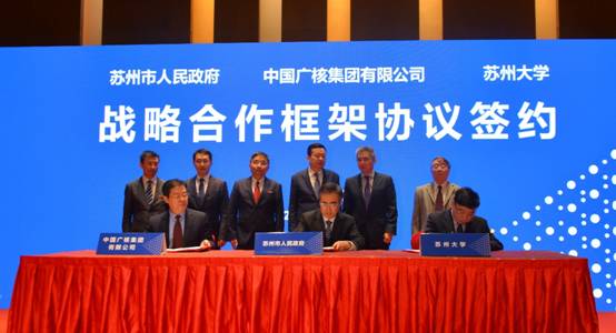 庞松涛副总经理在介绍中说,中广核集团历经30余年发展已成为国内第一、全球第三大核电运营商,资产规模和经营业绩稳居中央企业第一方阵。集团在苏州市集中了核技术应用领域的加速器制造、辐照加工服务、改性高分子材料等核心业务,截至2018年底,中广核核技术应用业务在苏州市的资产已达48亿,向苏州市的年纳税额达到2.5亿。希望通过此次三方战略合作协议的签署,全面深化集团与苏州市政府、苏州大学的合作,共同致力于打造国内高端核医学产业,为苏州经济发展和人民健康生活做出更大的贡献。