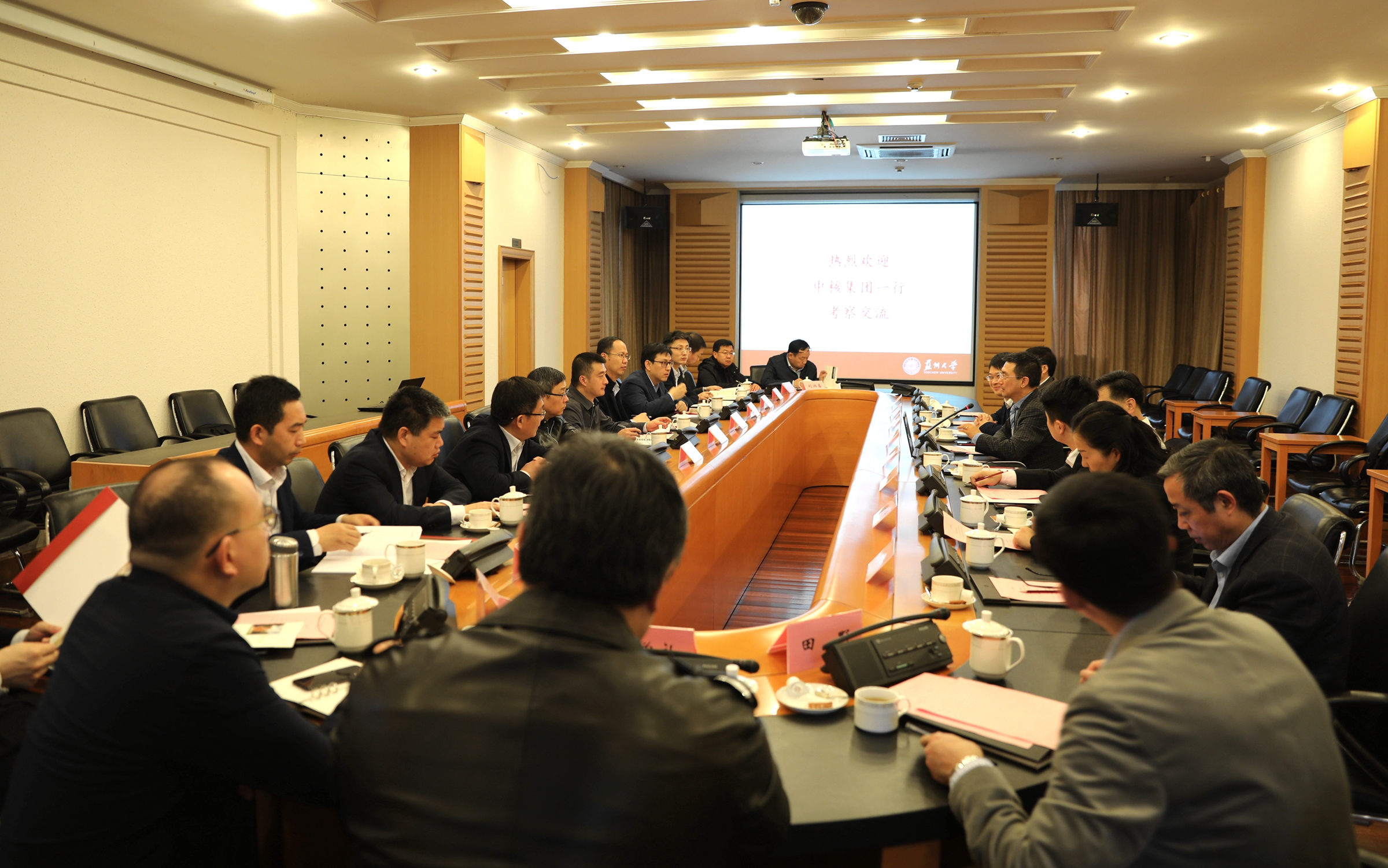 张玮副主任首先转达了中核集团主要领导对双方合作的重视、支持与期待,并表示此次考察团由中核集团及其下属公司中国同辐、中国宝原的15位代表组成。为了落实中核集团与苏州大学签署的战略合作协议,推动双方在核医学、放射医学及核技术应用等领域的合作,考察团将在接下来的行程中,与苏州大学相关学院、附属医院、研究平台进行深入交流,寻找相关合作的契合点,开拓校企合作新空间。