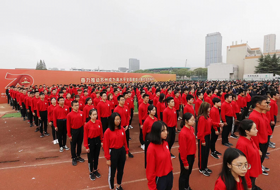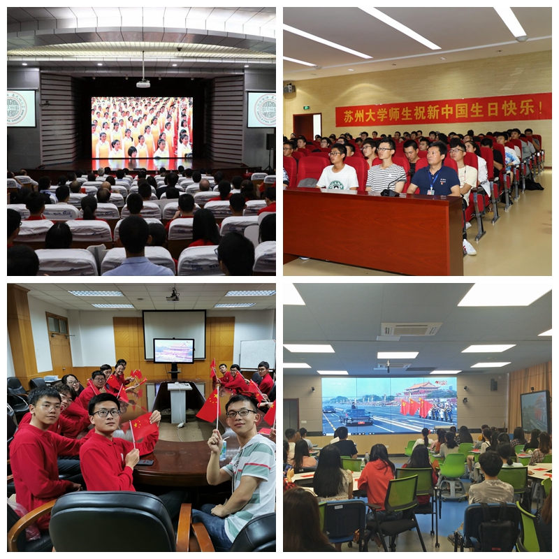 10月1日上午,苏州市隆重举行庆祝中华人民共和国成立70周年升国旗仪式,大力唱响礼赞新中国、奋进新时代的昂扬旋律,激励全市人民为苏州推动高质量发展走在时代最前列作出更大贡献,以优异成绩献礼中华人民共和国成立70周年。苏州市委副书记、市长李亚平出席并主持仪式。苏州市人大常委会主任陈振一,苏州市政协主席周伟强,苏州市委副书记朱民,苏州大学校领导江涌、熊思东、路建美、邓敏、杨一心、蒋星红、芮国强、陈卫昌、周高、刘标、张晓宏出席仪式。苏州市委、市人大常委会、市政府、市政协领导同志;苏州军分区司令员;市中级法院院长、市检察院检察长;市人大常委会、市政府、市政协秘书长;市委、市人大常委会、市政府、市政协各副秘书长;苏州市各有关部门和单位主要负责同志;部队官兵、民兵、苏州大学师生代表等参加了仪式。 仪式现场,全体人员在升旗台前整装列队,肃穆而立,国旗护卫队迈着整齐的步伐护送国旗走向升旗台。伴随着雄壮的国歌声,鲜艳的五星红旗缓缓升起。全体人员神情庄重,向国旗行注目礼,部队官兵和民兵代表行军礼,齐唱中华人民共和国国歌,向伟大祖国致以崇高的敬意和美好的祝福。 国旗迎风飘扬,点燃美好希望;国歌激昂嘹亮,奏响奋进凯歌。政治与公共管理学院研究生任楠说:“对于每个中华儿女来说,‘升国旗,唱国歌’都有着神圣的意义,在国庆节参加隆重的升旗仪式,心情无比激动。作为青年学生,要在新时代的坐标中寻找青春的焦点,努力成长为能够肩负历史使命的‘强国一代’,勤学习、多践行、敢担当,创造并见证下一个更加辉煌的七十年。” 上午十点,在天赐庄、独墅湖和阳澄湖校区的4个集中收看点,苏州大学师生们满怀喜悦和激动的心情收看了庆祝中华人民共和国成立70周年大会盛况。与此同时,学校各学院(部)、部门积极组织师生通过电视、网络、广播等多种媒体收看收听直播,共同见证伟大祖国的繁荣与富强。校本部学术报告厅内座无虚席,师生们手持国旗和各种国庆标语牌,自豪、激动、骄傲的表情洋溢于脸上。 在收听收看庆祝中华人民共和国成立70周年大会后,我校师生结合个人学习、工作、生活经历,从不同角度、不同侧面畅谈了对于新中国成立70周年来发展成就的深切感受,表达了对伟大祖国的无限热爱和对美好未来的坚定信心。 “在热烈庆祝新中国七十华诞之际,衷心祝愿祖国繁荣昌盛、人民幸福安康。”校党委书记江涌表示,当前苏州大学正加快推进“双一流”建设,学校综合实力不断增强,积极服务于地方经济社会发展,全校师生正用苏大人的使命与担当推动学校改革发展事业迈上新征程,凝聚强大精神力量,为江苏、为国家做出新的贡献,为实现中华民族伟大复兴中国梦而努力奋斗。 校长熊思东指出,新中国成立70年来取得了令世界刮目相看的伟大成就,让大家感到稳稳的幸福和无比的自豪。未来我们要加倍努力和奋斗,跑好这代人的接力棒,做出无愧于祖国、无愧于时代的工作业绩,以实际行动把总书记的重要讲话精神贯彻落实到推动高等教育改革发展创新的工作中去。 校团委书记肖甫青表示,苏大共青团将不忘为党培养社会主义建设者和接班人的初心,聚焦大学生思想政治引领这一主责主业,加强理想信念教育,把党的创新理论、党和国家的方针政策与大学生成长教育贯通起来,真正激发同学们真挚强烈的家国情怀,使爱国之志转化为报国之行。 收看直播时,学科建设办公室主任沈明荣回忆道,相比十年前,这次阅兵式一体化、无人化概念等都是首次提出,让人印象深刻、倍感自豪。军队在不断改革创新,高校更应该创新发展,要围绕国家重大战略需求交叉融合,加强基础研究和应用基础研究,提高产业化一体化布局,为祖国的发展壮大贡献力量。 数学科学学院院长张影在聆听了习近平总书记的重要讲话和观看了国庆阅兵后,表达了对祖国美好未来的坚定信心。他说,在实现中华民族伟大复兴的征程中,我们仍面临各种重大挑战,这就需要大家在党的领导下,扎实工作、不断创新,不遗余力、为国育才。 在收看了实况直播后,体育学院82岁的退休教师程战铭非常激动。他说,感觉自己又上了一堂爱国爱党的思想教育课。70年来,国家从一穷二白走到世界舞台中央,取得举世瞩目的成就,我们看到了祖国的繁荣富强,看到了人民军队的昂扬风貌,看到人民的幸福安康,作为炎黄子孙深感骄傲与自豪。 政治与公共管理学院党委副书记、副院长尹婷婷表示,要按照习近平总书记所强调的“扎根中国、融通中外,立足时代、面向未来,坚定不移走自己的路”,努力发展更有质量、更有内涵的教育开放品牌,聚天下英才而用之。 马克思主义学院2019级博士研究生毛瑞康表示,共和国走过了70年的征程,阔步迈入了新时代,这是实现中华民族伟大复兴的最关键时代,也是当代青年的崭新机遇。作为青年学子,要始终热爱伟大祖国,积极担当时代责任,以青春之我、奋斗之我,为国家富强、民族振兴、人民幸福贡献青年力量。 “看到人民军队整齐划一的步伐,听到嘹亮的口号,心底一股自豪之情油然而生!”敬文书院、东吴商学院2017级本科生张迪感慨道,作为新时代的中国青年,更应以浩然之气、以青春之我创造青春之中国,时刻牢记习近平总书记的深切嘱托,不忘初心、牢记使命,用奋斗书写属于青