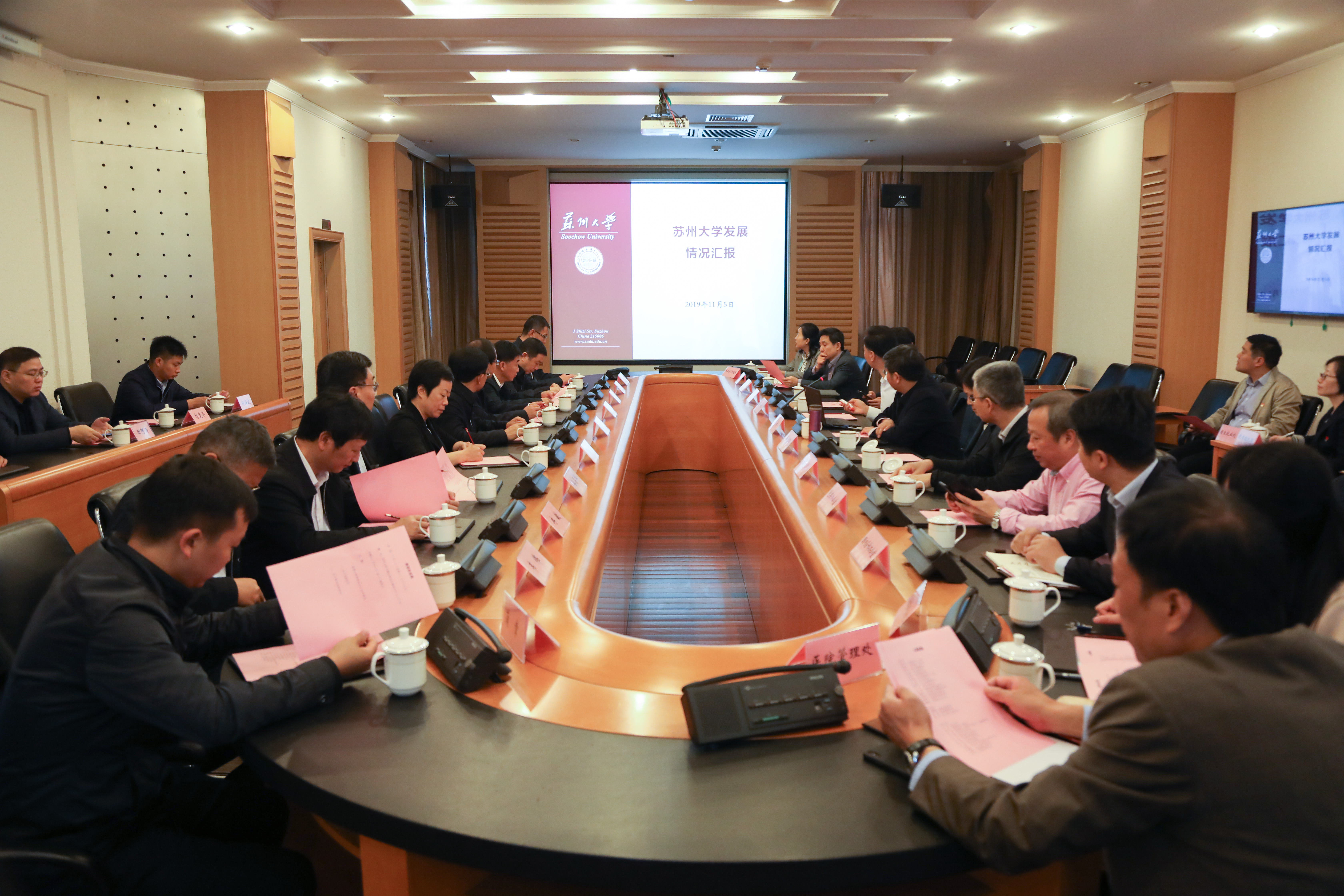 11月5日,贵州铜仁市委副书记、市长陈少荣率领考察团到访我校,就当前双方合作情况进行交流。我校党委书记江涌、副校长杨一心在红楼会议中心接待了来访人员并举行座谈会,校相关职能部门负责人出席座谈会。 座谈会上,杨一心副校长从办学历史、人才培养、科学研究和国际化等方面介绍了苏州大学的基本情况,对双方已开展的合作进行了盘点。他表示,自2013年苏州市与铜仁市结为对口帮扶城市以来,双方在多个领域进行了全方位的深入合作,苏大也参与其中,取得了一系列瞩目成果。今后苏大将继续在系统培训、优质生源基地、干部挂职、科学研究平台、研究型智库、5G临床教学系统等方面与铜仁市开展更深层次的交流与协作,系统培养各级各类专业人才,为政府治理献计献策。 铜仁学院副院长罗红芳对苏大长久以来给予铜仁学院的帮助表示感谢。她说,铜仁学院作为铜仁市唯一的本科院校在明年将有望获得硕士点,希望苏大能够在人才培养、学科建设、科学研究、师资交流等方面继续给予铜仁学院支持帮助,建设好四方平台,做好人才培养工作,让铜仁学院有所作为,切实提升服务地方经济发展的办学实力和水平。 陈少荣市长对我校长期以来给予铜仁市的帮扶表示感谢。他表示,苏大有着深厚的历史文化底蕴,近年来在科学研究、人才培养、国际交流与合作、社会服务等方面取得了飞速发展。感谢苏大近年来对铜仁学院开展的有温度、深度、力度和高度的帮扶工作,学校先进的办学理念为铜仁学院注入了活力。铜仁作为位于西部欠发达地区的地级市,教育是一块不容忽视的短板,与发达地区有着较大差距。期望双方进一步加强合作,拓宽合作领域,加大合作力度,让教育、科技、人才支撑起铜仁的发展。 江涌书记对铜仁市各位领导的到来表示热烈欢迎。他指出,本次考察为双方提供了一次很好的学习、合作、研讨的机会,体现了铜仁市政府对高等教育的重视和对苏大的信任。苏大已通过多种方式,特别是在医疗帮扶领域,为铜仁带去了先进的医院管理理念和医疗技术,有效提升了铜仁的医疗服务水平和能力。苏大与铜仁市的合作有基础、有条件,未来也更有信心。贵州是革命老区,有着丰富的红色资源,希望今后在党建方面能够加强与铜仁市的合作交流。他表示,学校将全力支持与铜仁开展的各项合作,推动双方改革发展迈上新台阶。 座谈会前,在杨一心副校长的陪同下,考察团一行参观了校博物馆。 |