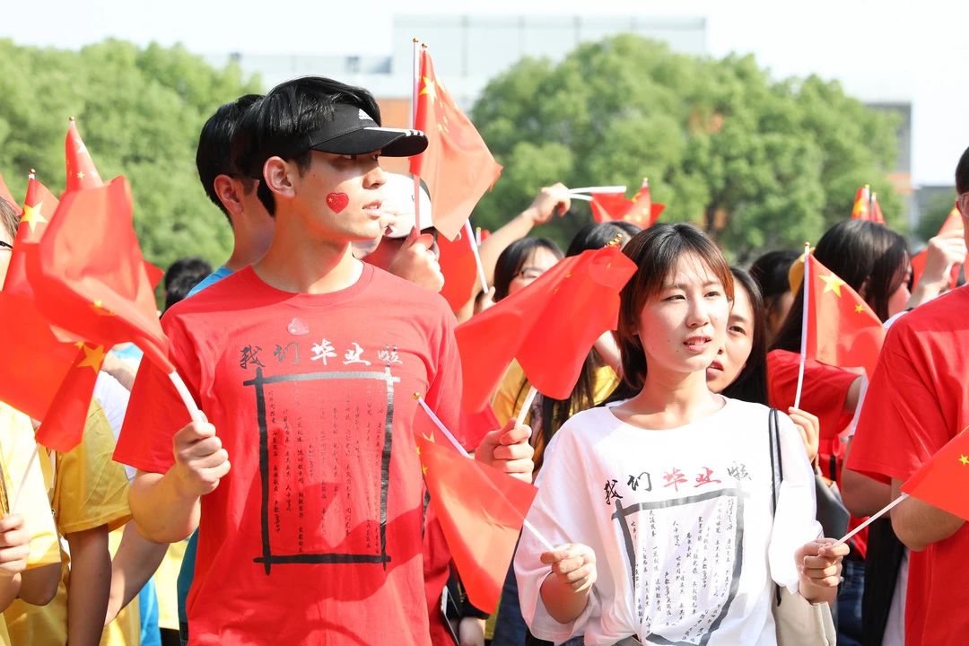 “我和我的祖国,一刻也不能分割,无论我走到哪里,都流出一首赞歌……” 仪式结束后,毕业生们齐聚钟楼前大草坪,手中挥舞着五星红旗。伴随着悠扬的钢琴声和小提琴声,大家深情高唱《我和我的祖国》,为祖国七十华诞献礼。