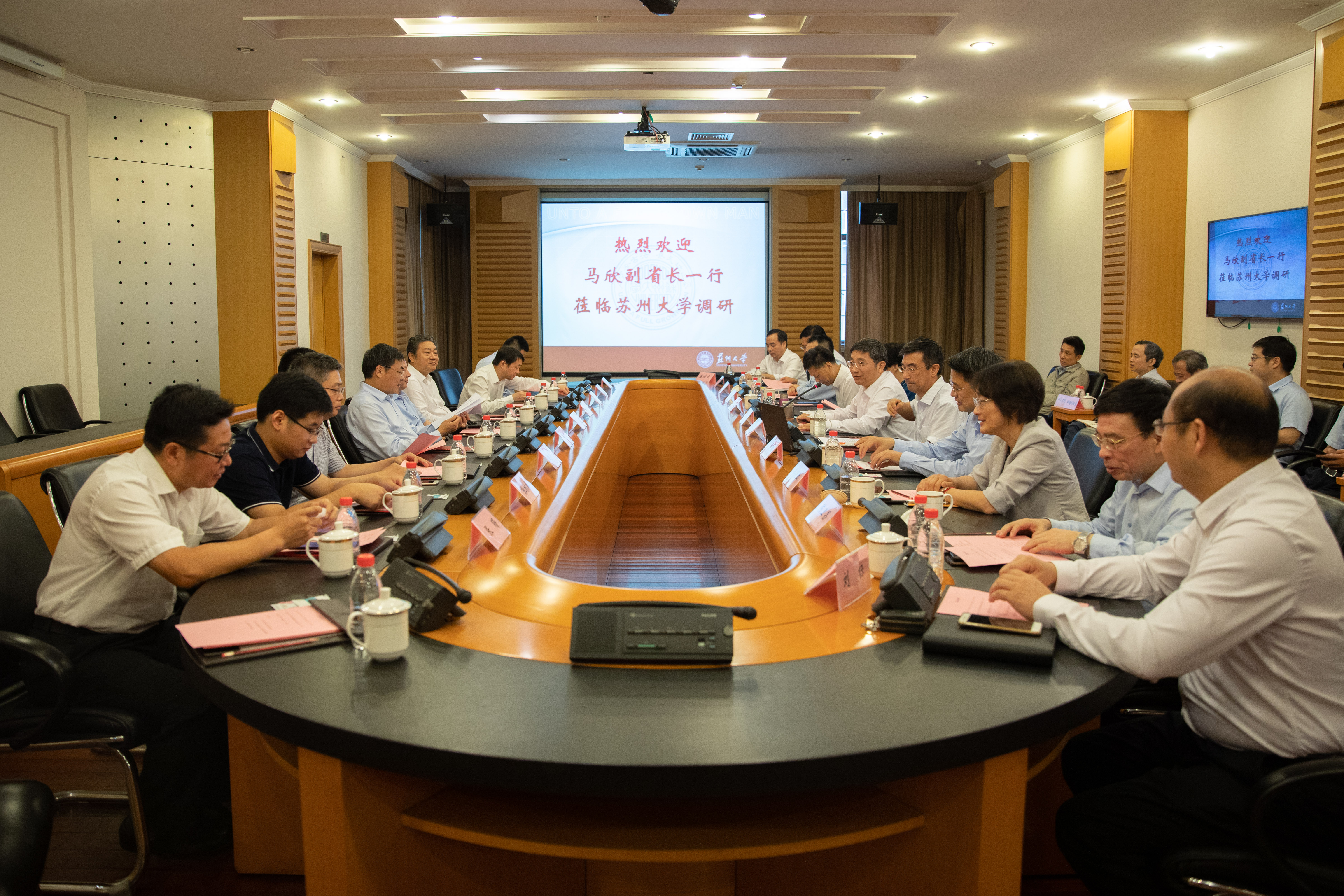 6月23日上午,副省长马欣一行来我校考察调研并召开座谈会。省政府副秘书长徐光辉、江苏省教育厅副厅长洪流、苏州市政府副市长曹后灵等随同考察,我校党委书记江涌、校长熊思东陪同调研。