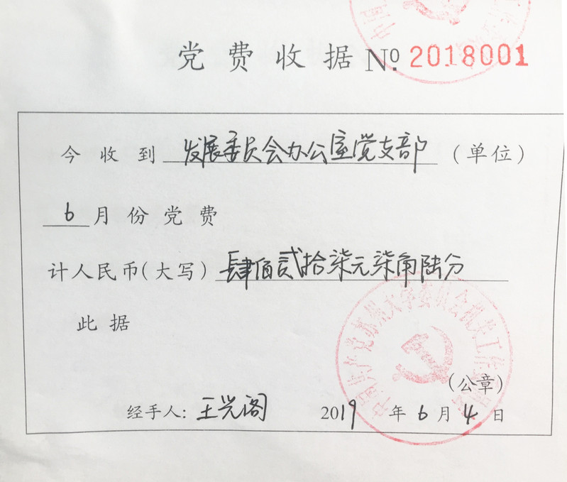 发展办党支部2019年6月党费收缴清单