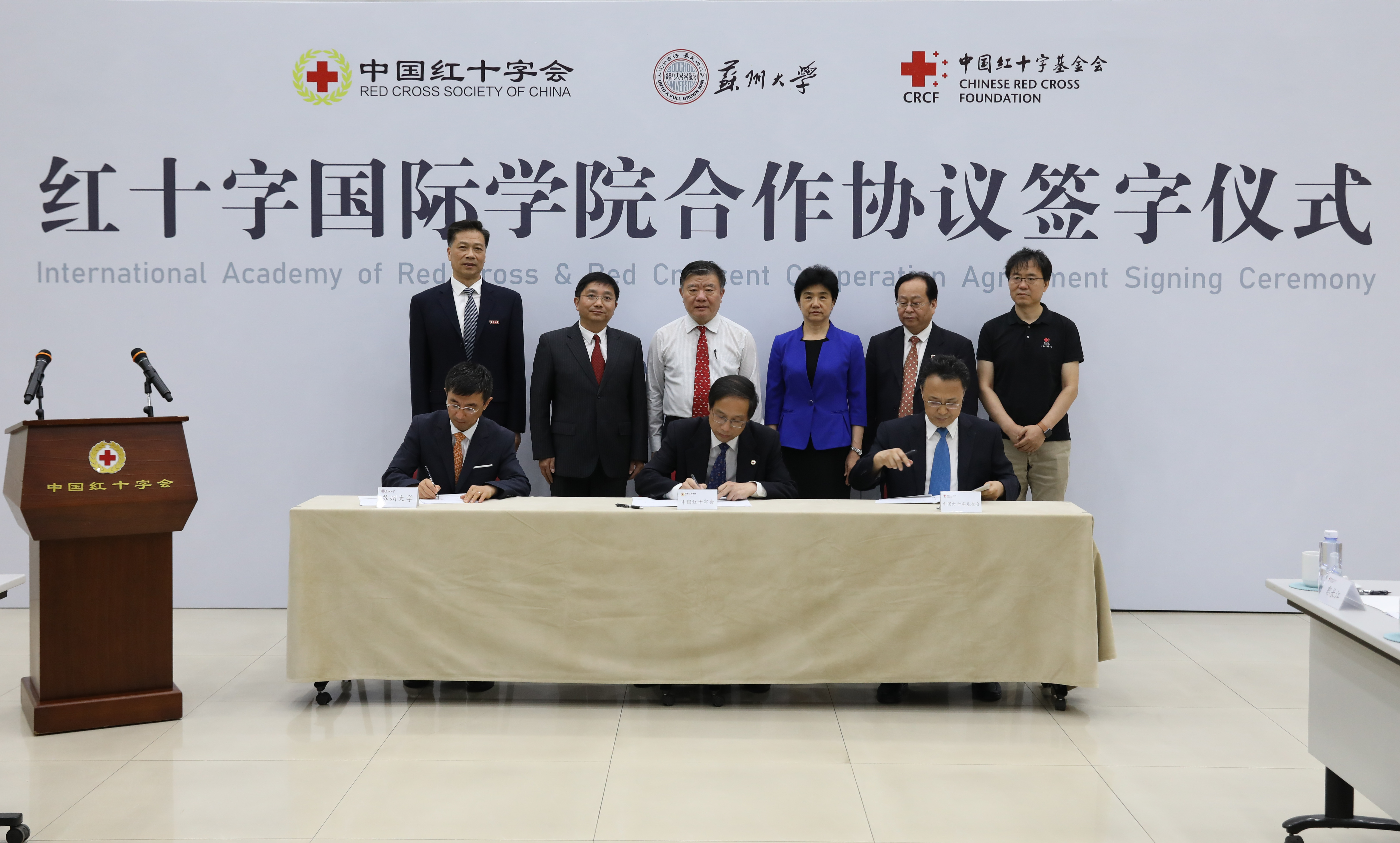 6月30日,中国红十字会总会、苏州大学、中国红十字基金会在京签署创办红十字国际学院合作协议。全国人大常委会副委员长、中国红十字会会长陈竺出席签字仪式,并与中国红十字会党组书记、常务副会长梁惠玲,中国红十字会副会长兼秘书长王平,我校党委书记江涌、副校长杨一心,中国红十字基金会常务副理事长兼秘书长孙硕鹏等领导一起见证了协议签字。签字仪式由梁惠玲主持,中国红十字会副会长王汝鹏、我校校长熊思东、中国红十字基金会理事长郭长江分别代表合作方在协议上签字。 陈竺会长在讲话中指出,中国红十字事业正处在新的历史起点上,红十字国际学院的创办正当其时,它不仅将为中国特色红十字事业的可持续发展注入新的动力,也将为解决国际人道问题、促进国际红十字运动发展贡献中国智慧和中国方案。他希望合作各方加快学院筹建工作,做好顶层设计,调动各方资源和力量,使红十字国际学院早日建成开学、发挥作用。 王汝鹏在致辞中指出,全世界还没有一所真正意义上的红十字院校。有着百年历史的中国红十字会联手有着百年传承的苏州大学,共同创办一所真正意义上的红十字国际学院,是两个“百年老店”在新时代的一个创举,必将在中国红十字运动乃至国际红十字运动发展史上写下光彩的一笔,对中国特色红十字事业的发展将产生积极而深远的影响。 江涌在致辞中指出,与中国红十字会和中国红十字基金会共同创办红十字国际学院,是苏州大学发展史上的一件大事、喜事和幸事,也是苏大人一份沉甸甸的责任。未来,红十字国际学院将在红十字理论研究、人才培养、智库建设、国际传播等方面努力成为基地和高地,为国际红十字运动和中国红十字事业发展贡献一份力量。 红十字国际学院筹建工作领导小组成员、苏州大学有关方面负责人参加了签字仪式。 |