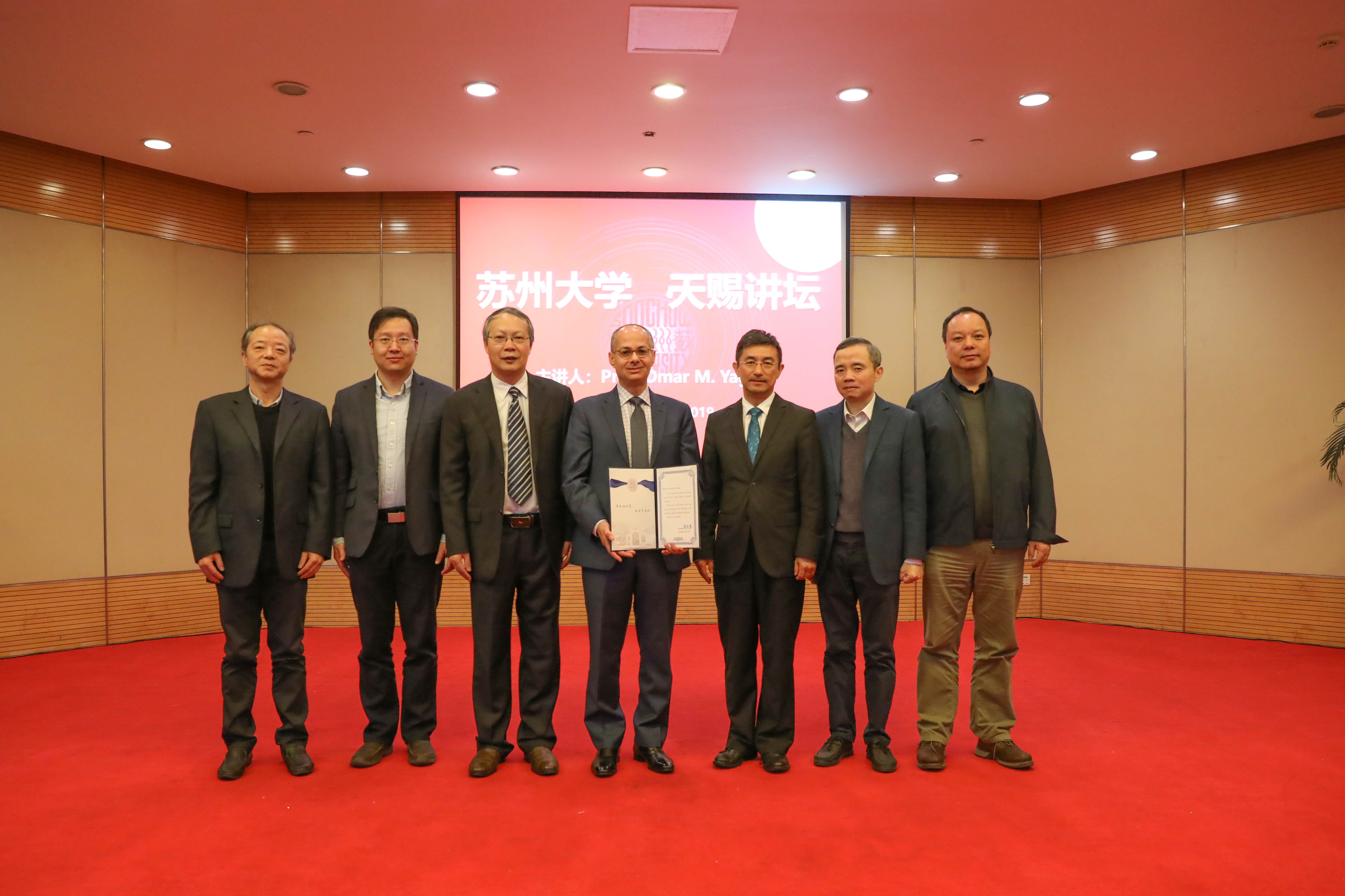 11月18日上午,苏州大学首期“天赐讲坛”在炳麟图书馆学术报告厅举行,美国科学院院士Omar M. Yaghi教授做客讲坛,为师生带来了一场精彩的学术报告。校长熊思东,学科建设办公室主要负责人、材料与化学化工学部党政领导班子全体成员以及200余名师生出席报告会。会议由欧洲科学院外籍院士郎建平主持。