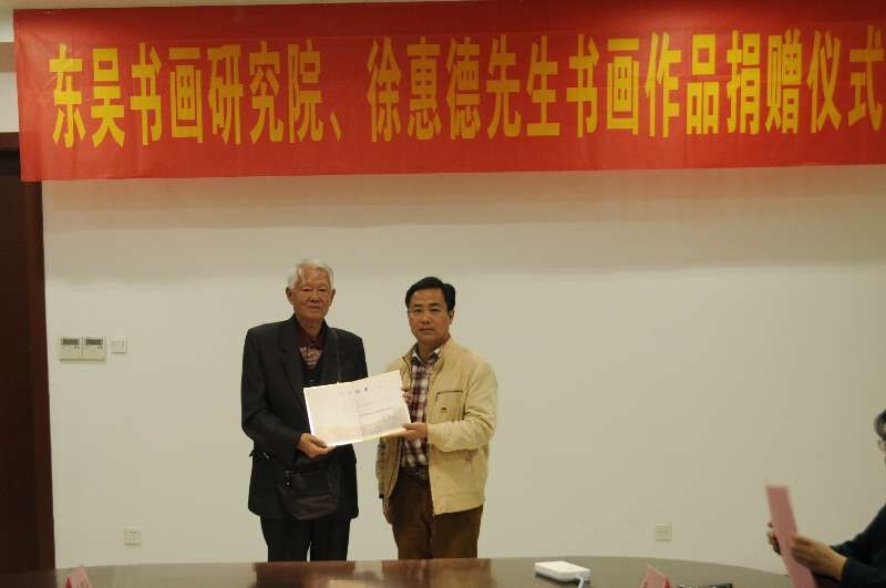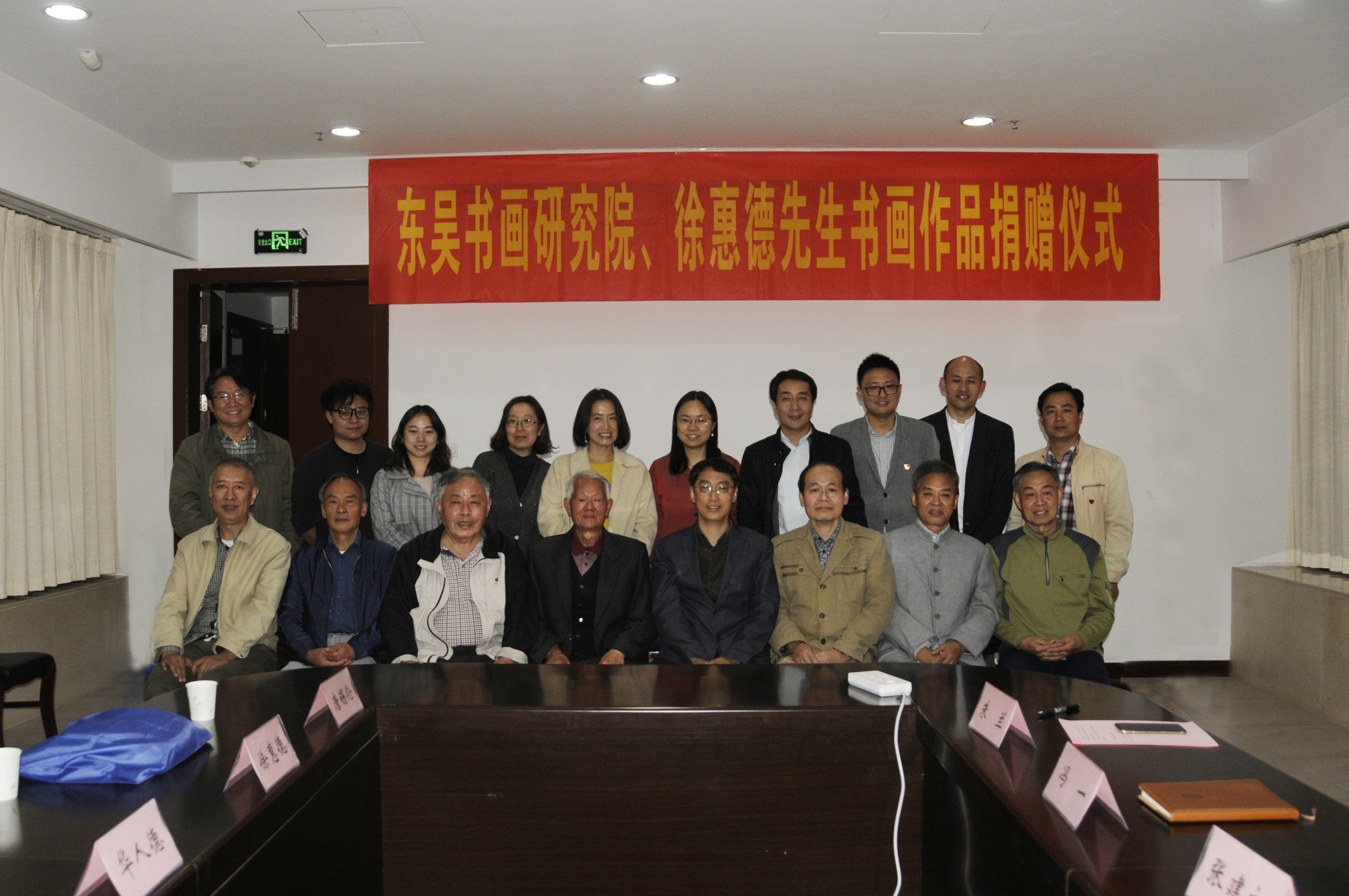 11月6日,东吴书画研究院(书画协会)、徐惠德先生书画作品捐赠仪式在校博物馆三楼会议室举行。苏州大学原党委副书记徐惠德、东吴书画研究院院长华人德、书画协会原秘书长金维惠、书画协会原副秘书长唐锡伦、图书馆古籍特藏部夏兆可,书画协会现任副会长张建初、陈道义、逢成华以及书画协会会员、博物馆工作人员共计20余人参加了此次捐赠仪式。