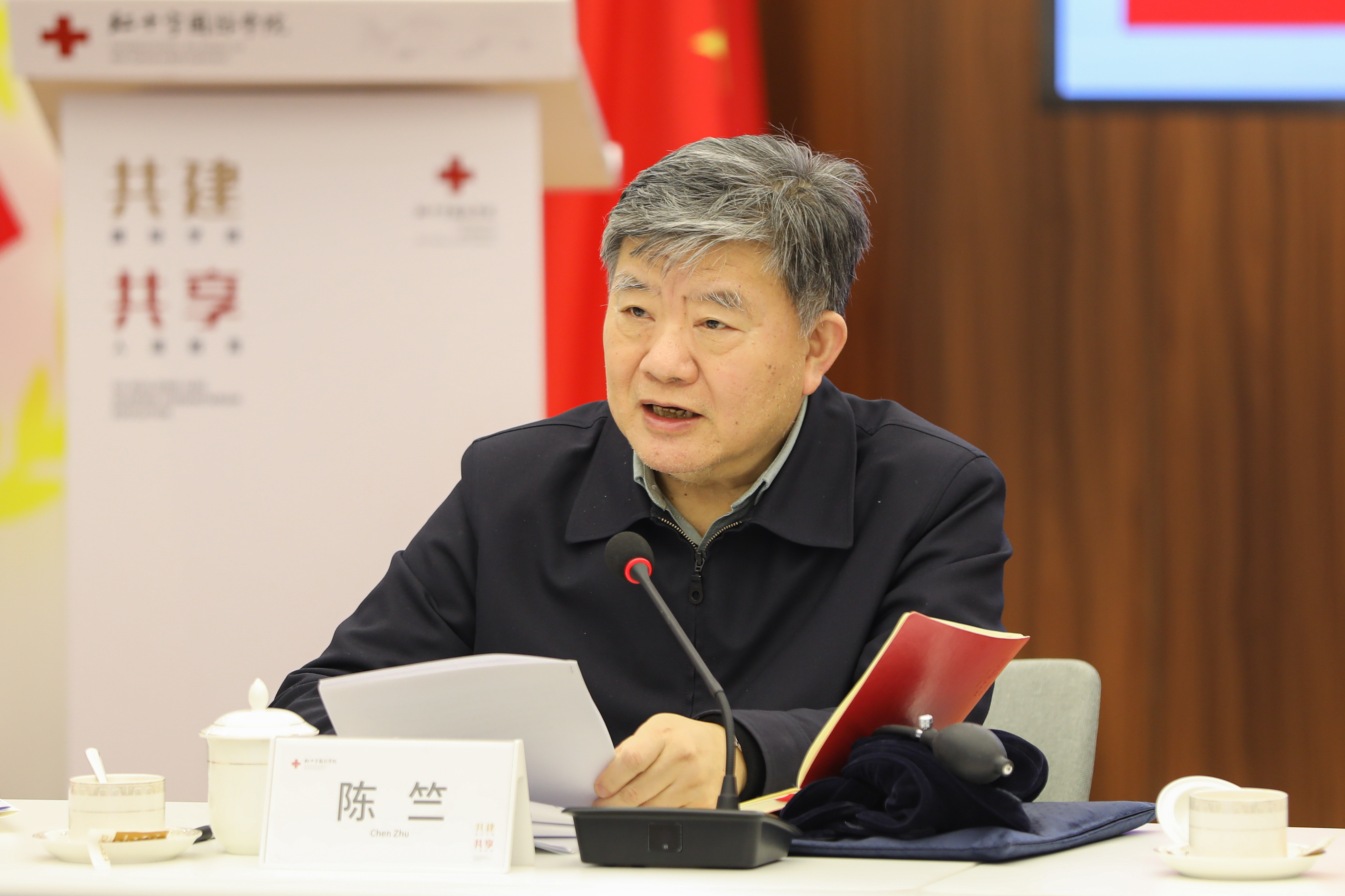11月22日下午,红十字国际学院建设发展座谈会在我校红十字国际交流中心举行。全国人大常委会副委员长、中国红十字会会长、红十字国际学院名誉院长陈竺,我校党委常委、副校长姚建林,红十字国际学院院长王汝鹏,红十字会与红新月会国际联合会亚太地区办公室副主任、红十字国际学院客座教授彭玉美,中国红十字总会、中国红十字基金会、江苏省、苏州市红十字会同仁,红十字国际学院全体老师出席座谈会。会议由中国红十字会党组成员、副会长、红十字国际学院理事会理事长孙硕鹏主持。