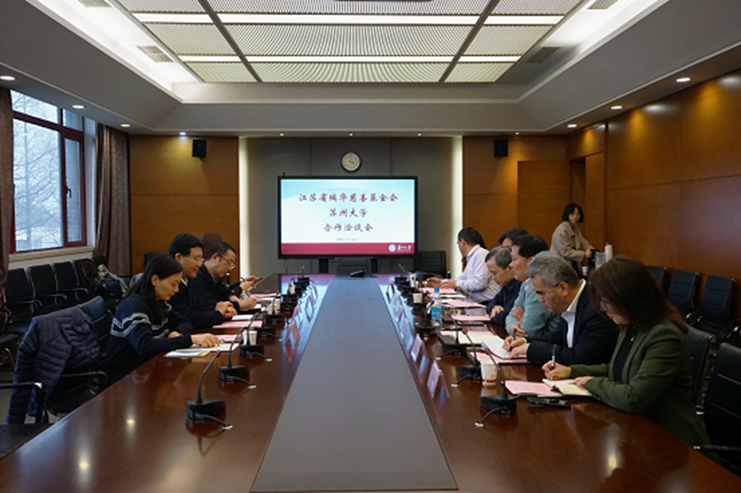 3月11日,江苏省瑞华慈善基金会(以下简称:瑞华慈善基金会)副理事长史兆荣一行来苏州大学考察交流,校党委书记江涌热情接待了史兆荣一行。瑞华慈善基金会秘书长张颂杰、高校资助部主任黄洁、项目经理赵晓娟,我校副校长沈明荣,以及发展办、学生工作(部)处、敬文书院相关负责人参加了活动。