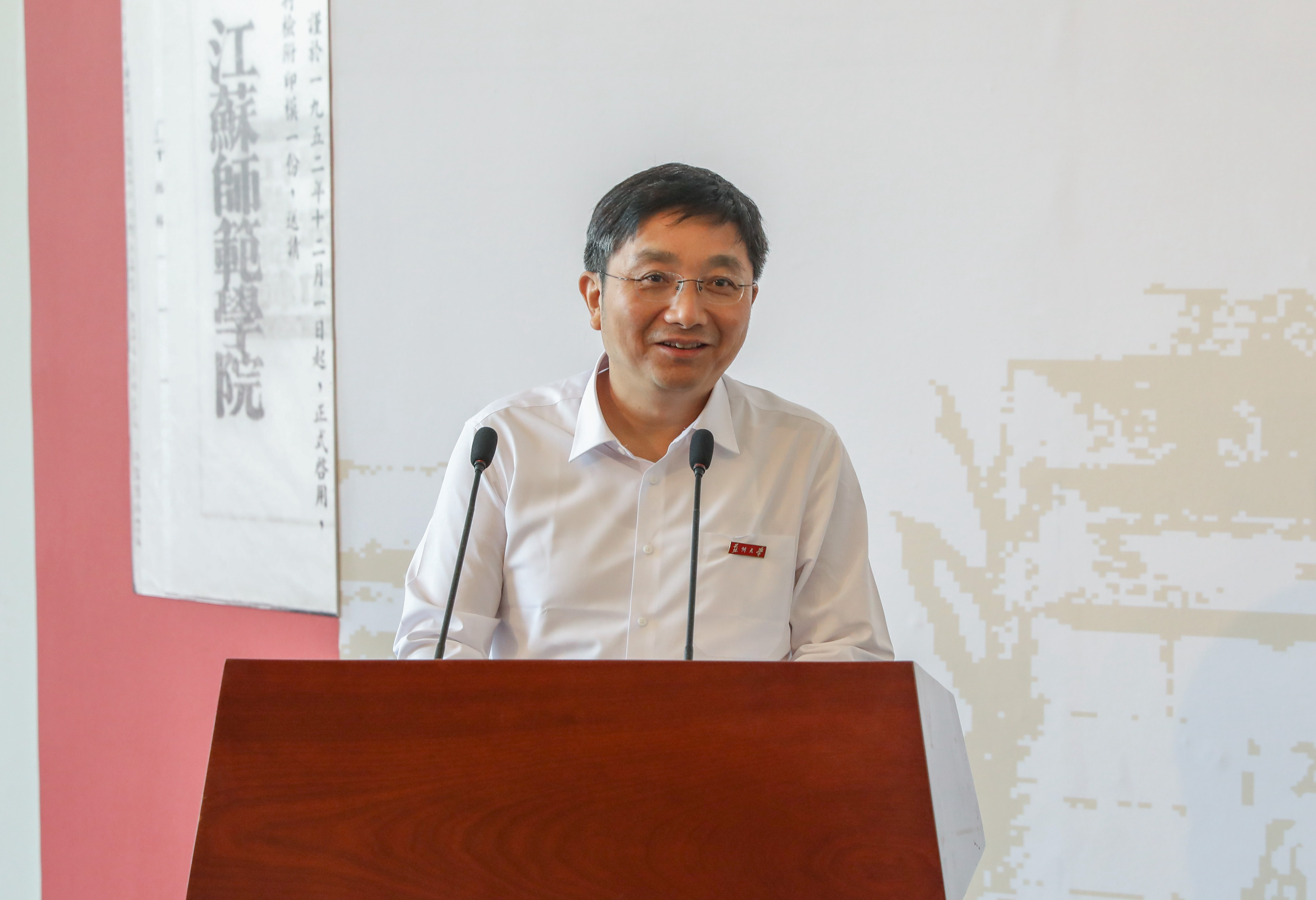 校友代表、江苏省苏州中学校长、高级教师卫新回忆起三十年前在苏大的求学经历,他感谢母校的培养,让自己成长为一名合格的人民教师。他指出,夯实基础教育,是一个国家、一个民族强盛的基础,苏大办好师范教育,培养一批又一批适应新时代发展需求的优秀教师,对于推动苏州经济社会及基础教育发展意义重大。