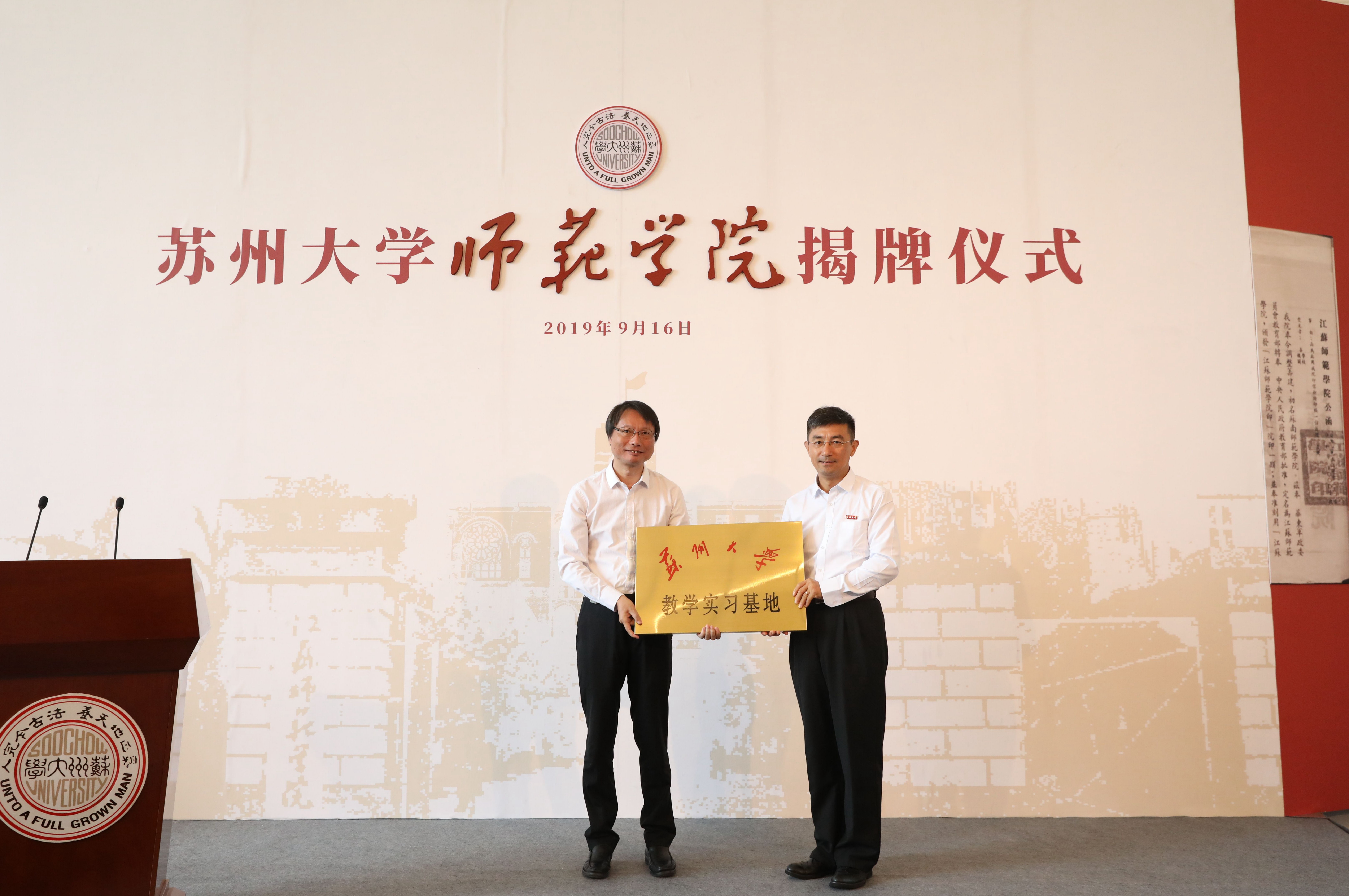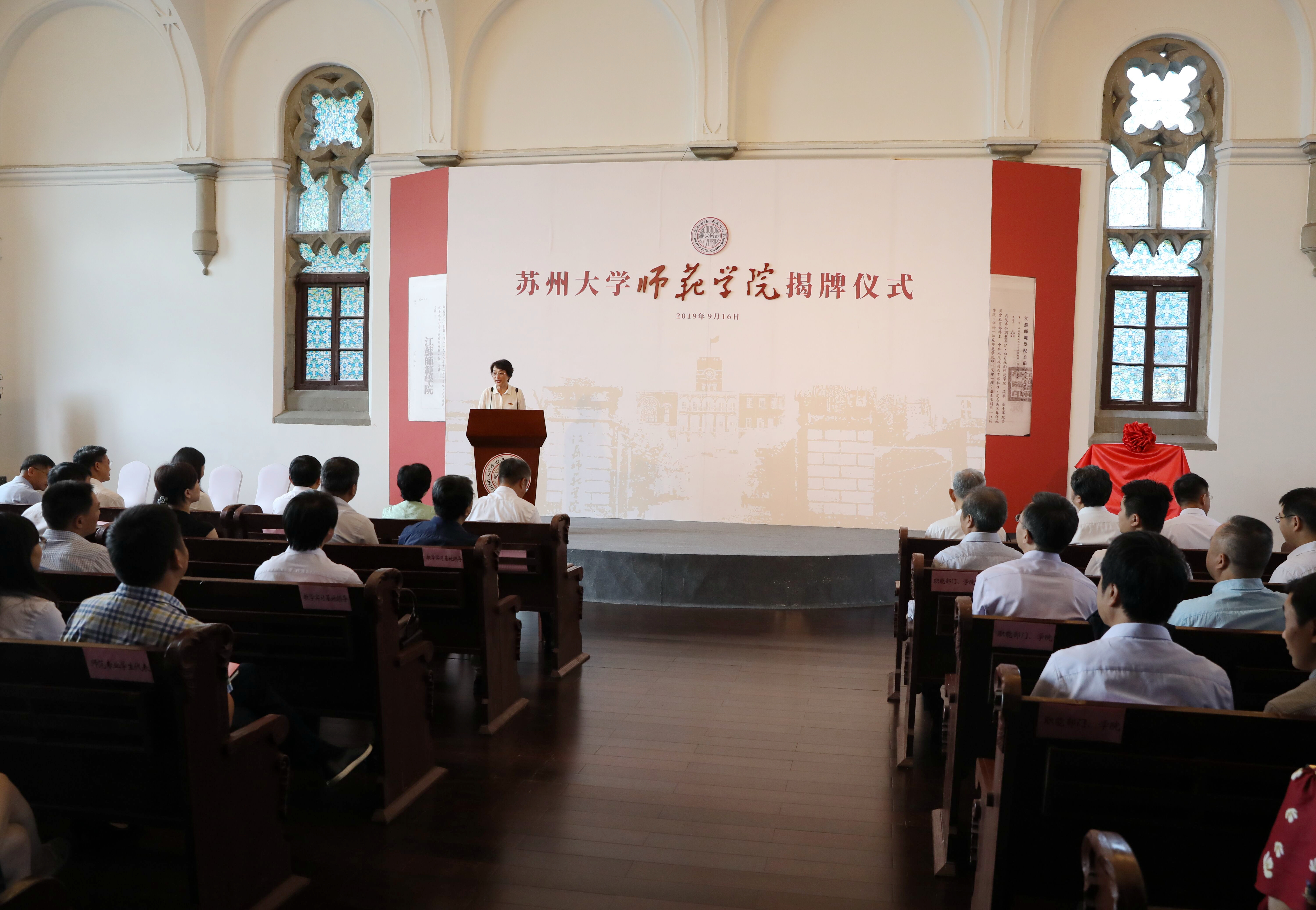 为大力发展师范教育,着力培育优秀师范人才,苏州市教育局与苏州大学经友好协商达成协议共建苏州大学师范学院,共同开启苏州大学师范教育改革发展新篇章。9月16日上午,苏州大学师范学院揭牌仪式在钟楼礼堂举行。