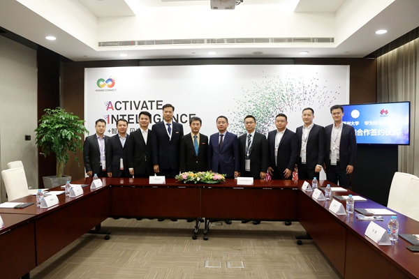 10月10日,苏州大学与华为技术有限公司战略合作框架协议签约仪式在上海世博中心举行。双方本着“联合、互补、共赢、发展”的原则,面向信息技术和高等教育发展未来,共同致力于打造一个镜像化、数字化、智能化的“云中大学”,并在人才培养、科研合作、成果转化等领域开展全面合作。 华为技术有限公司EBG中国区副总裁杨萍、企业业务江苏区总经理鲁伟、企业业务中国区教育业务部部长张夷、企业业务苏州区总经理江文淼、企业业务苏州区副总经理秦亮,我校校长熊思东、副校长杨一心,以及校长办公室、信息化建设与管理中心、国内合作办公室等部门负责人参加了签约仪式。