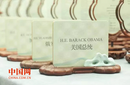 峰会欢迎晚宴丝绸席签: