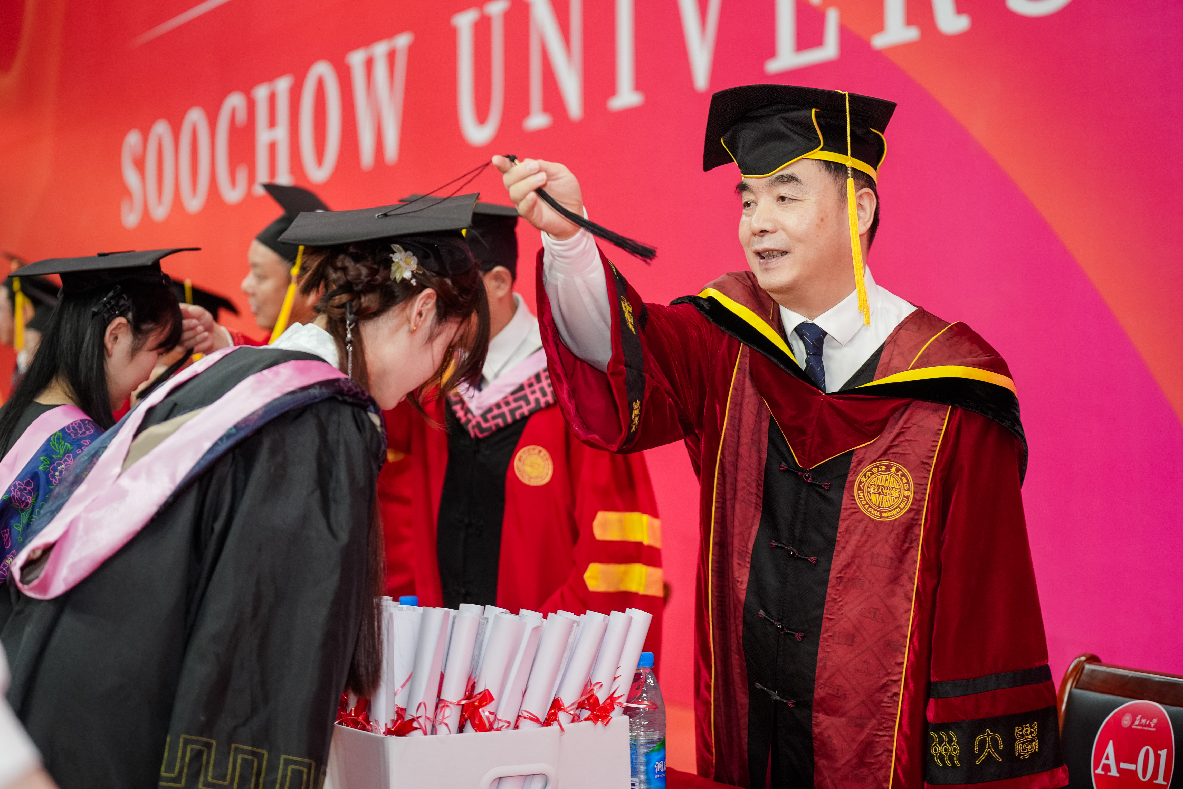 “此去山高水长,但你们绝不是孤帆远航,终有一天,会从撑一叶轻舟的少年,成长为驾驶巨舰归来的栋梁!”张桥表示,母校将始终做大家最坚实的护航力量,相信有苏州硬核的支撑,有祖国磅礴的力量,苏大学子们将在科技创新“无人区”、产业升级“主战场”、文化传承“新赛道”上,以青春智慧和创新锐气书写时代答卷,让奋斗之花在服务国家人民的征程中绚丽绽放。