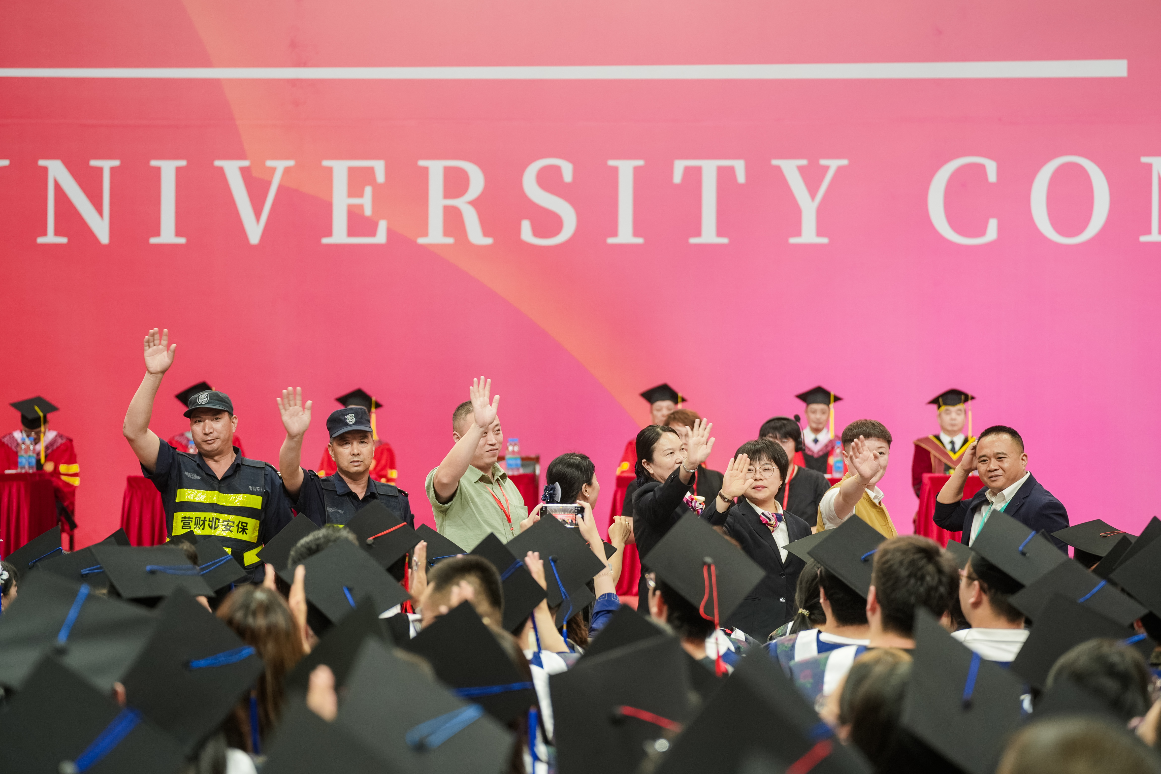 全体校领导、各学位评定分委员会成员、研究生导师、职能部门负责人,各学院(部)负责人、教师、辅导员、2025届毕业生及家长代表出席毕业典礼。学校的食堂师傅、宿管阿姨、保安大叔、快递小哥代表也应邀来到了现场,共同见证毕业生们重要而幸福的时刻。