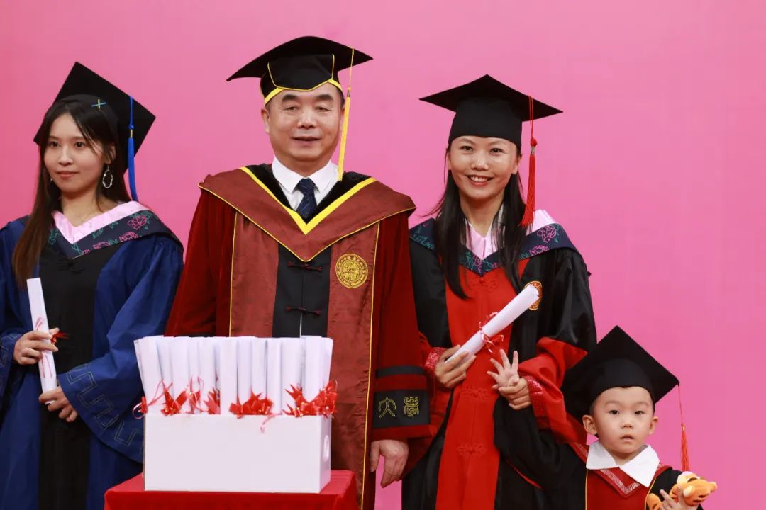 传媒学院毕业生侯琰慧坦言,博士求学之路充满挑战,不仅要兼顾工作和学业,还要照顾家庭和孩子。“感谢学校提供了宽松自由的科研环境,也感谢自己坚持不懈的努力!”她希望孩子今天在现场能感受到浓厚的校园氛围和满满的仪式感。