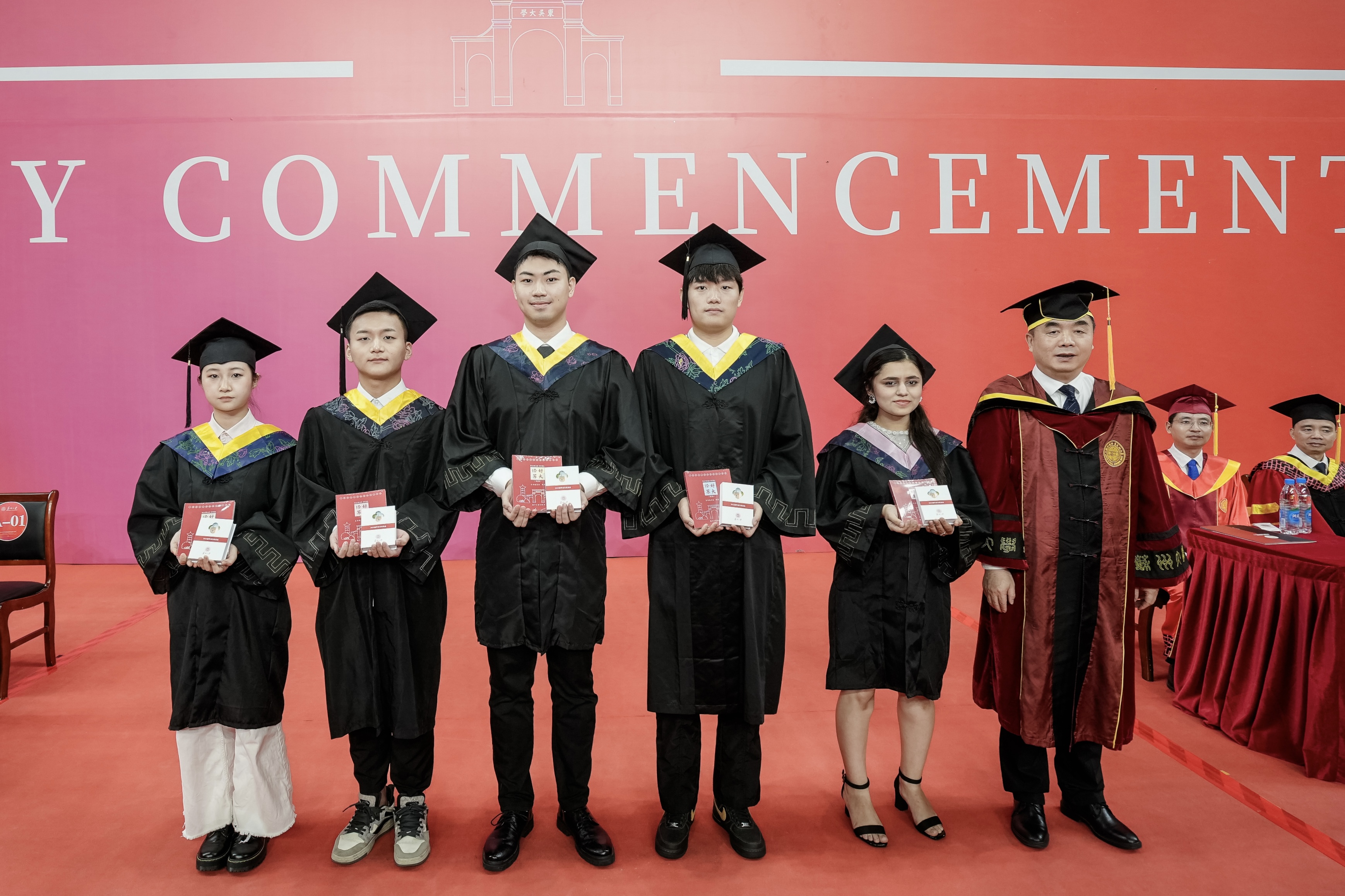 校党委书记张晓宏分别为机电工程学院曾湘黔、计算机科学与技术学院邵前程、纳米科学技术学院张泽堃、未来科学与工程学院高靖康、文学院留学生李薇等五位本科生代表;为纺织与服装工程学院葛灿、艺术学院范李文、苏州医学院药学院高一剑、功能纳米与软物质研究院闫晓莹、能源学院留学生萨拉等五位研究生代表赠送毕业纪念品,并与同学们合影留念,期待大家带着母校的印记与嘱托,开启新的人生旅程。