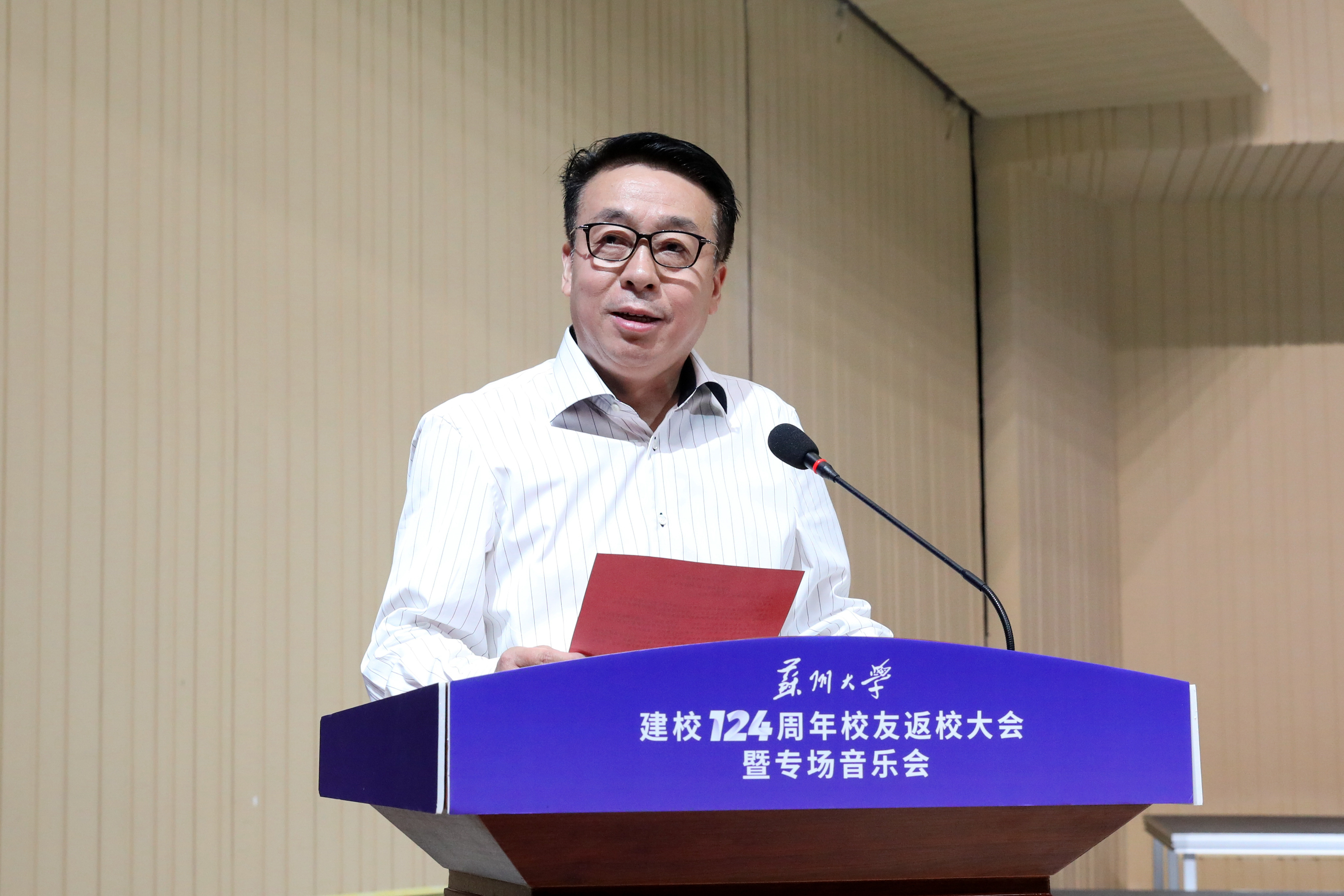 校友代表、王健法学院1997届经济法专业毕业生赵鸣回顾了难忘的老师恩与同窗情,也表达了对苏大学子能够树立崇高理想的希望及对母校蓬勃发展的祝福。他表示,苏州大学校友会作为汇聚广泛校友资源的开放性平台,不仅为校友提供了交流心得、增进情谊的机会,更起到了整合资源、发挥校友优势的纽带作用,希望大家积极参与校友会活动,共同为母校的繁荣增光添彩。