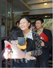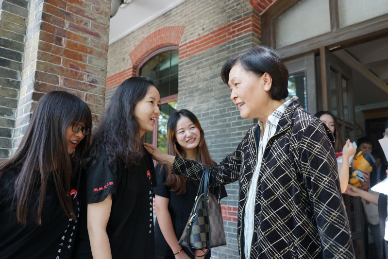 苏州大学爱心学社的学生们得知唐仲英基金会嘉宾来学校访问,自发组织起欢迎队伍,带着鲜花和吉祥物满怀期待来看望他们亲爱的徐阿姨、朱姐姐和张姐姐,红楼会议中心门前欢快一片。