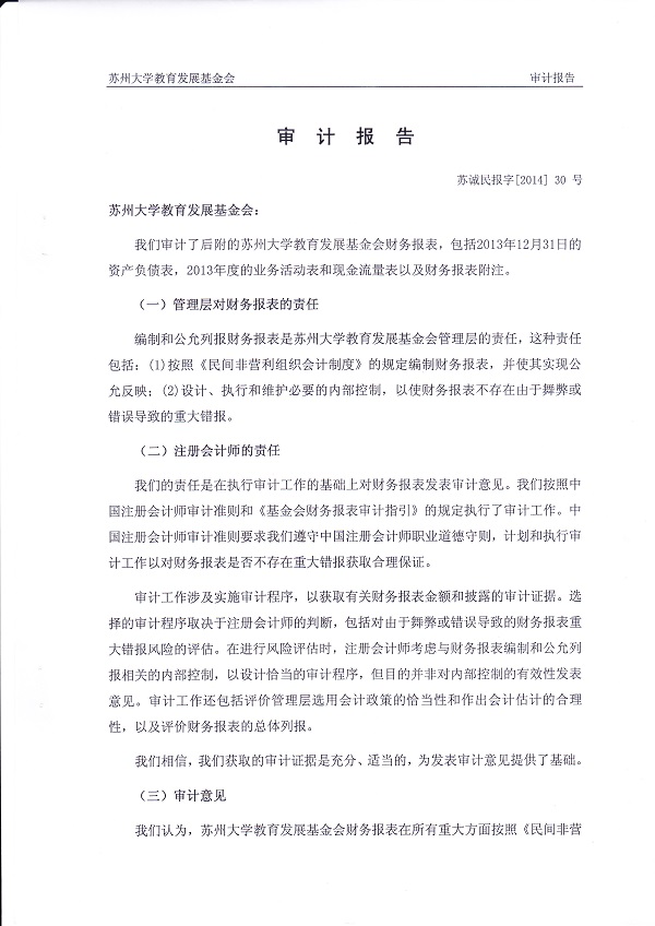 苏州大学教育发展基金会审计报告-2014