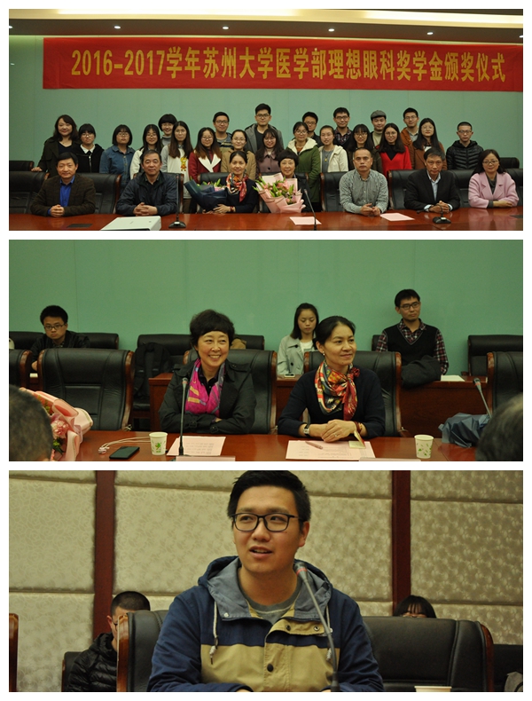 2018年3月15日,苏州大学医学部于独墅湖校区放射医学与防护学院一楼会议室顺利举行理想眼科奖学金颁奖仪式。颁奖仪式由苏州大学医学部党工委副书记黎春虹老师主持。出席本次仪式的嘉宾老师有:苏州大学附属理想眼科医院院长宋鄂教授,苏州大学理想眼科奖学金发起人郑丽雅女士,校学生工作处副处长陈平老师,医学部党工委书记邹学海老师,医学部基础医学与生物科学学院副院长戈志强老师,医学部药学院副院长汪维鹏老师,医学部放射医学与防护学院学工办主任朱巍老师,闫家辉同学等二十位理想眼科奖学金获得者全部参加了颁奖仪式。