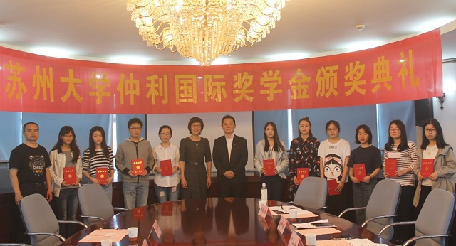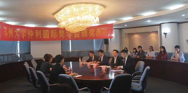 | 苏州大学仲利国际奖学金颁奖典礼于5月23日下午1:30在东吴商学院财科馆三楼317会议室举行。来自东吴商学院的康梦研等20名优秀本科生获得了此项殊荣。出席本次活动的嘉宾有仲利国际租赁有限公司副总经理祝立山,仲利国际租赁有限公司苏州分公司总监高方明、人力资源处总监许耿皓,周唯先生,苏州大学发展委员会办公室主任、苏州大学教育发展基金会秘书长赵阳,学生工作部(处)副部(处)长陈平。此次颁奖典礼由东吴商学院学工办副主任陶勇老师主持。