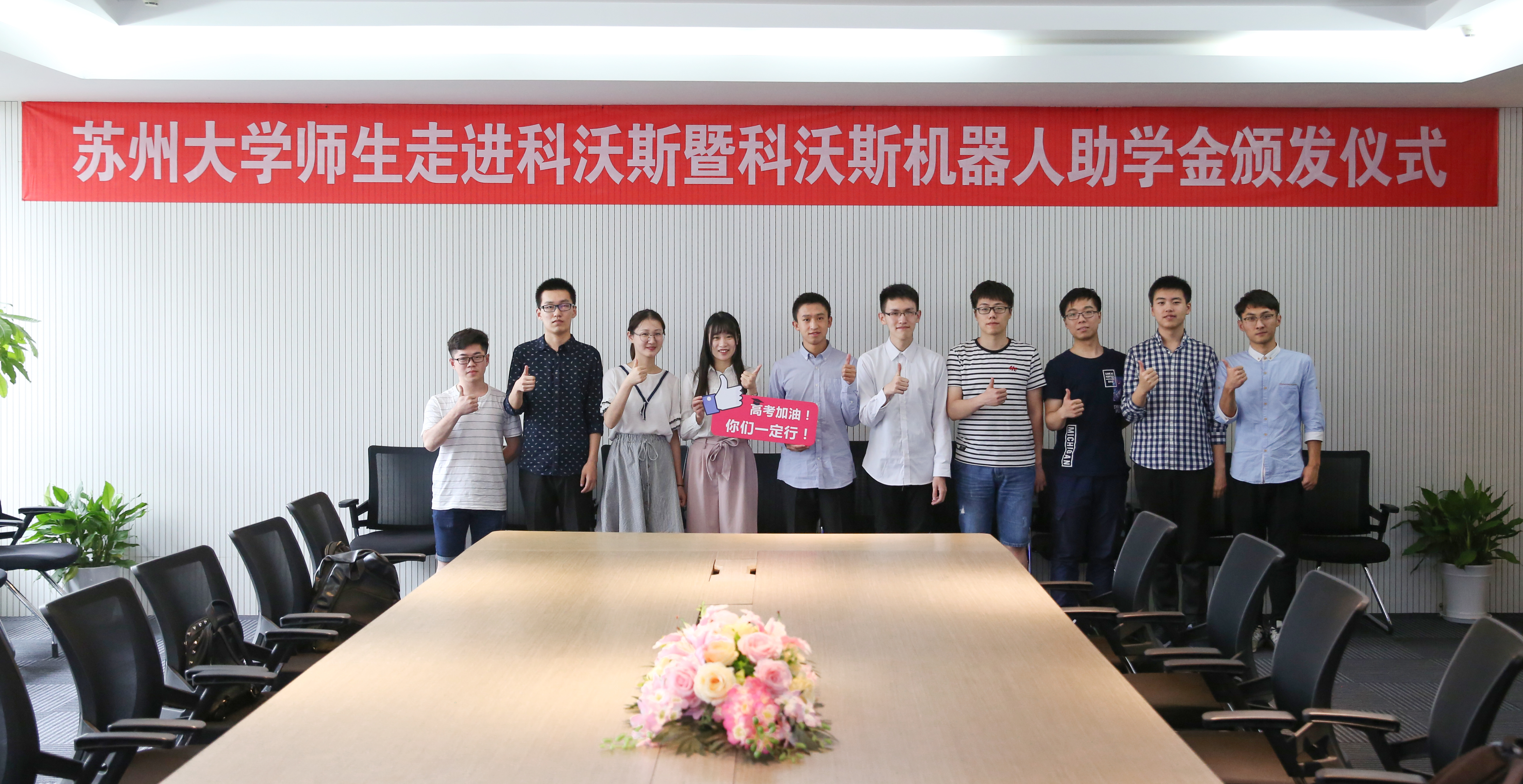 5月18日下午,“苏州大学——科沃斯”助学金颁发仪式在科沃斯机器人股份有限公司综合楼一楼蓝海会议室举行。科沃斯机器人股份有限公司人力资源总监李航,电子信息学院党委副书记、副院长黄远丰出席了活动,一同出席活动的还有科沃斯机器人助学基金会的主要负责人以及受助学生和相关年级辅导员。
