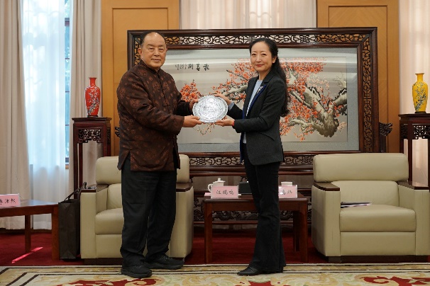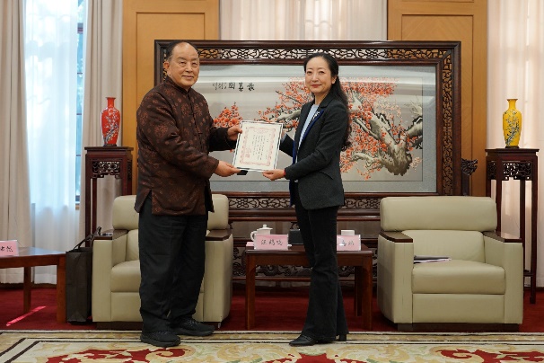 在与会人员的见证下,吴嘉炜副校长向汪鹤鸣校友颁发捐赠证书并赠送纪念盘。
