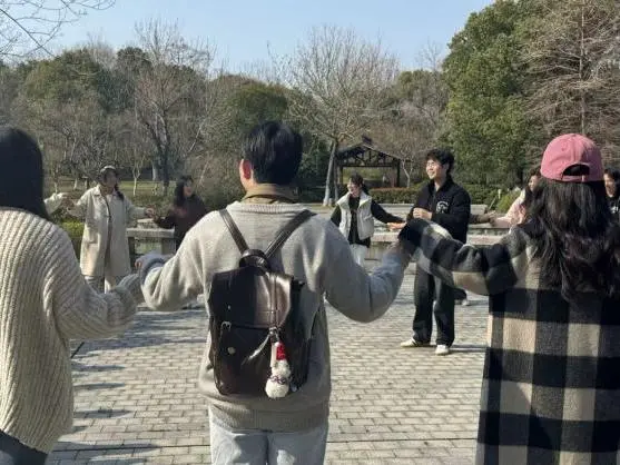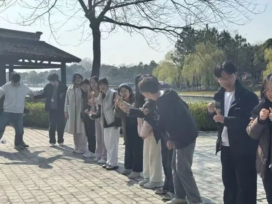 随后,师生们从唐仲英基金会中国中心出发,开始了四公里徒步。沿途欣赏了苏州湾的美景,波光粼粼的太湖水,含苞欲放的樱花林,大家在暖阳春色中欢笑前行,最终抵达苏州湾体育公园并一同乘车返回学校。