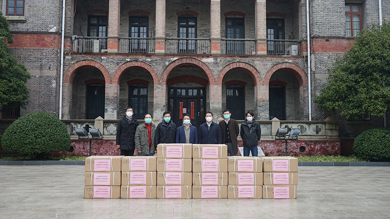 2020年2月14日,一批价值近30万元的战疫物资品接收仪式在苏州大学钟楼南广场举行。苏州大学党委常委、纪委书记芮国强,发展委员会办公室主任、教育发展基金会秘书长胡新华,以及医院管理处,苏州大学附属第一医院、附属第二医院、附属儿童医院相关老师共同见证。